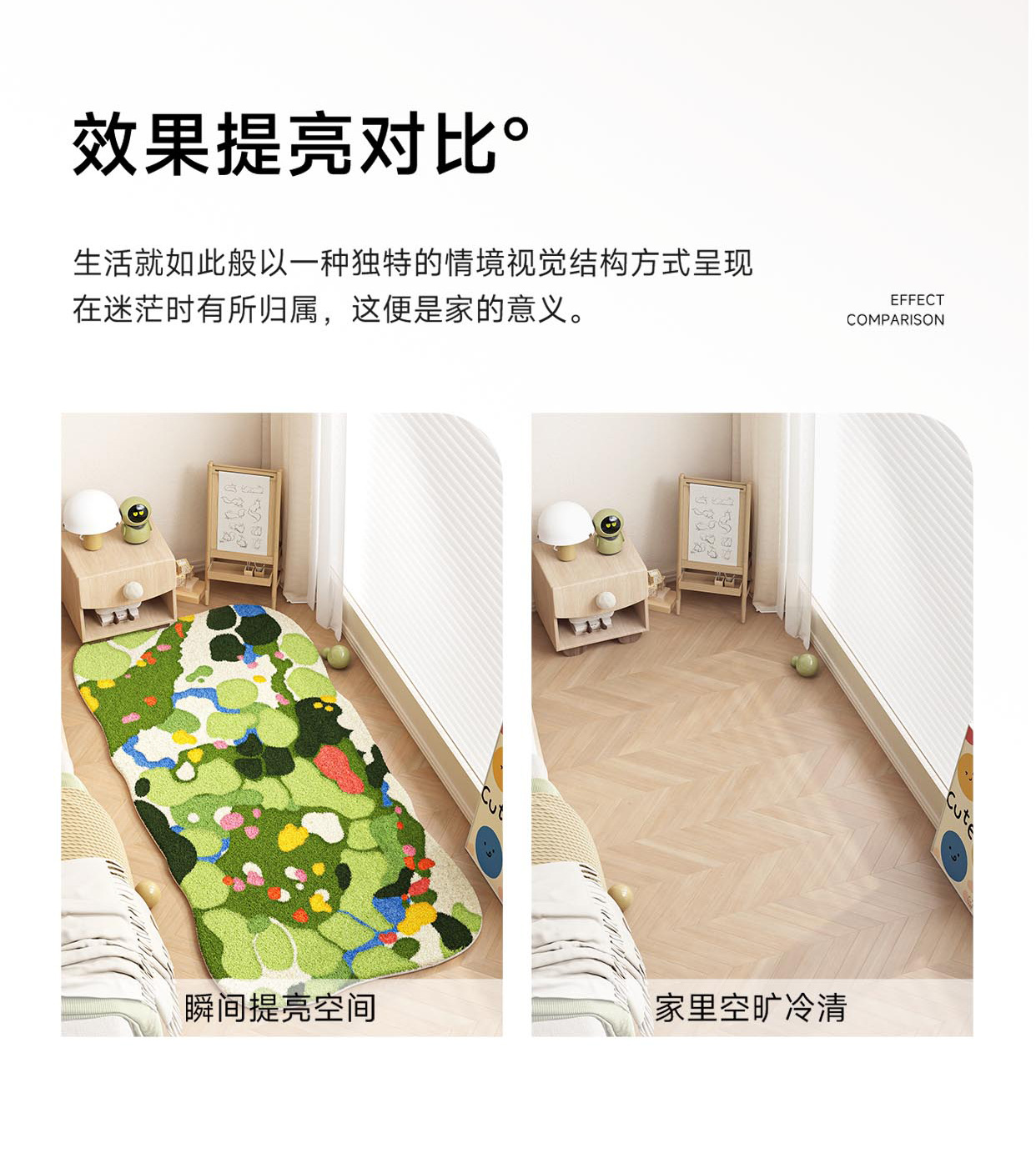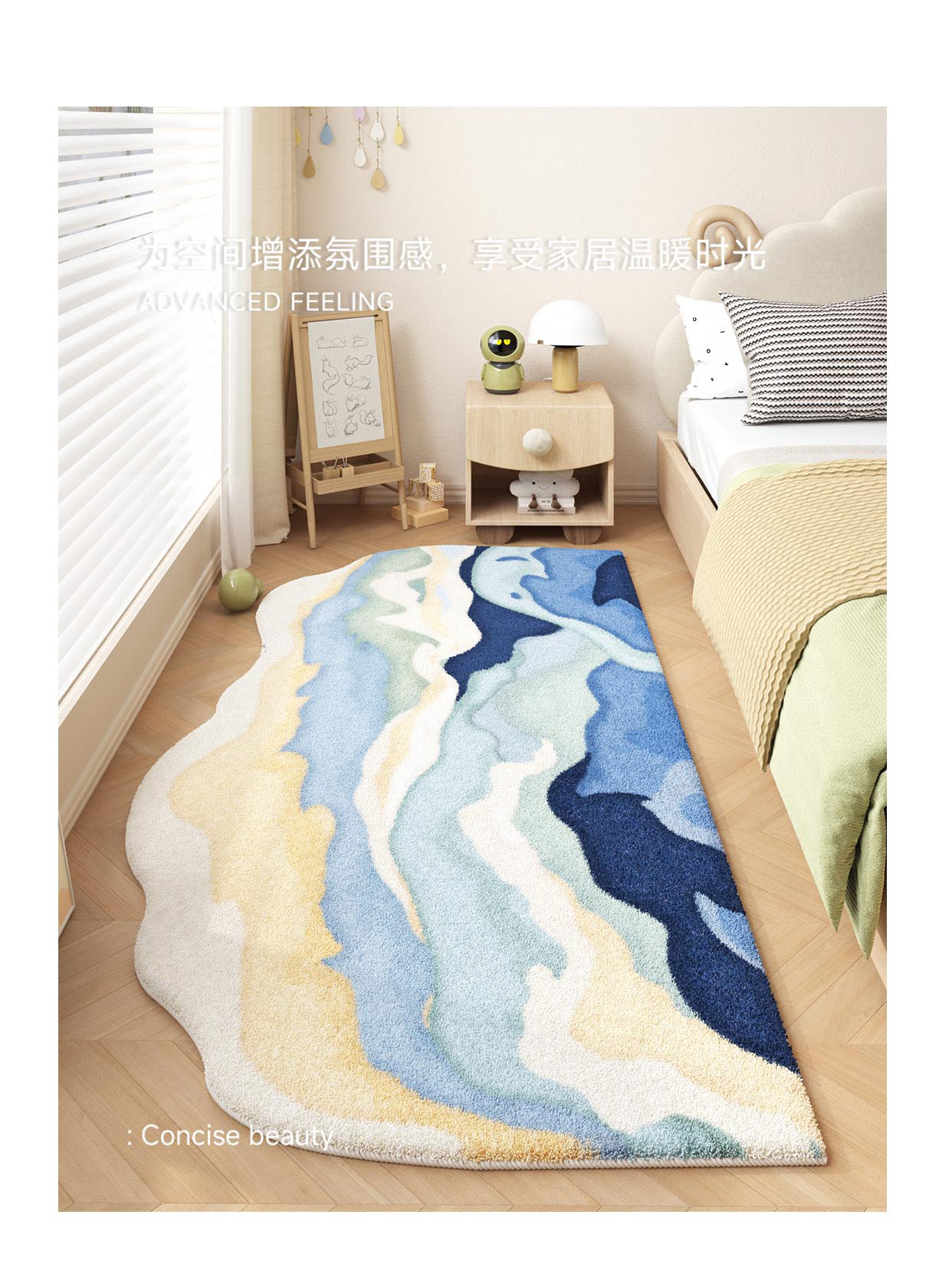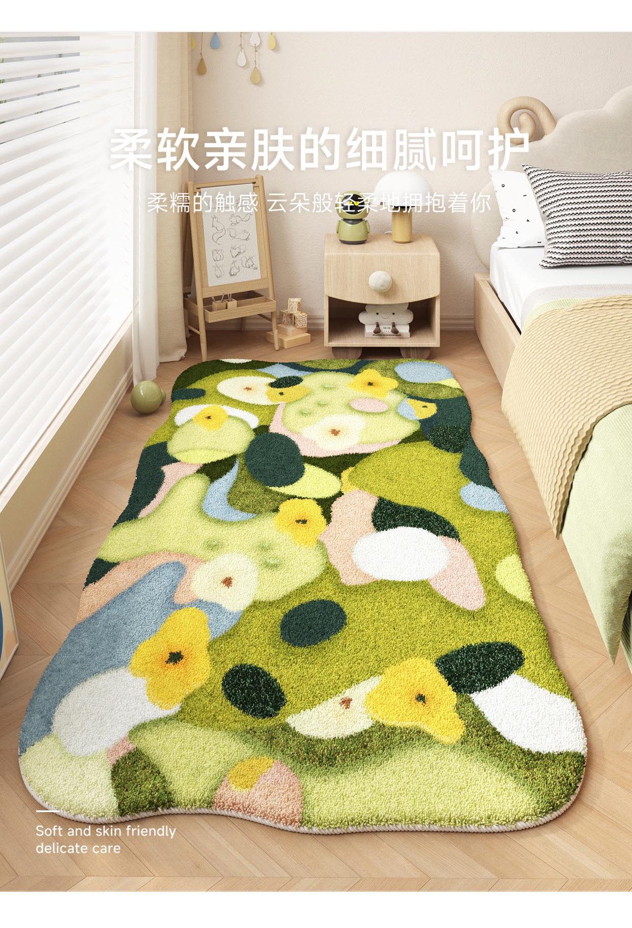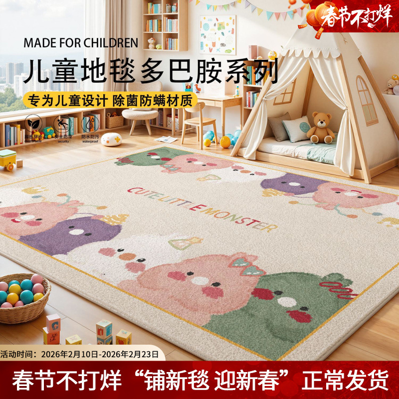 儿童房地毯客厅多巴胺地垫阅读区卧室床边毯爬爬垫免打理防水防污