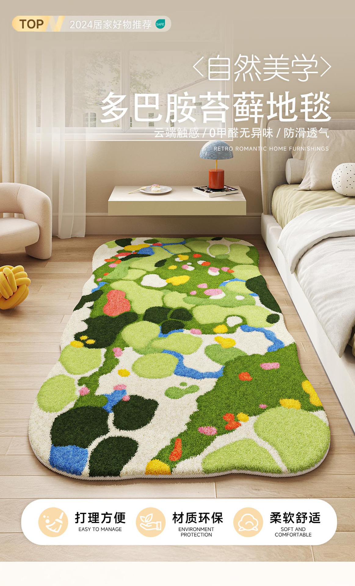 リビングカーペット2025新型洗濯なしで寝室のベッドサイドのカーペットを拭くことができます。