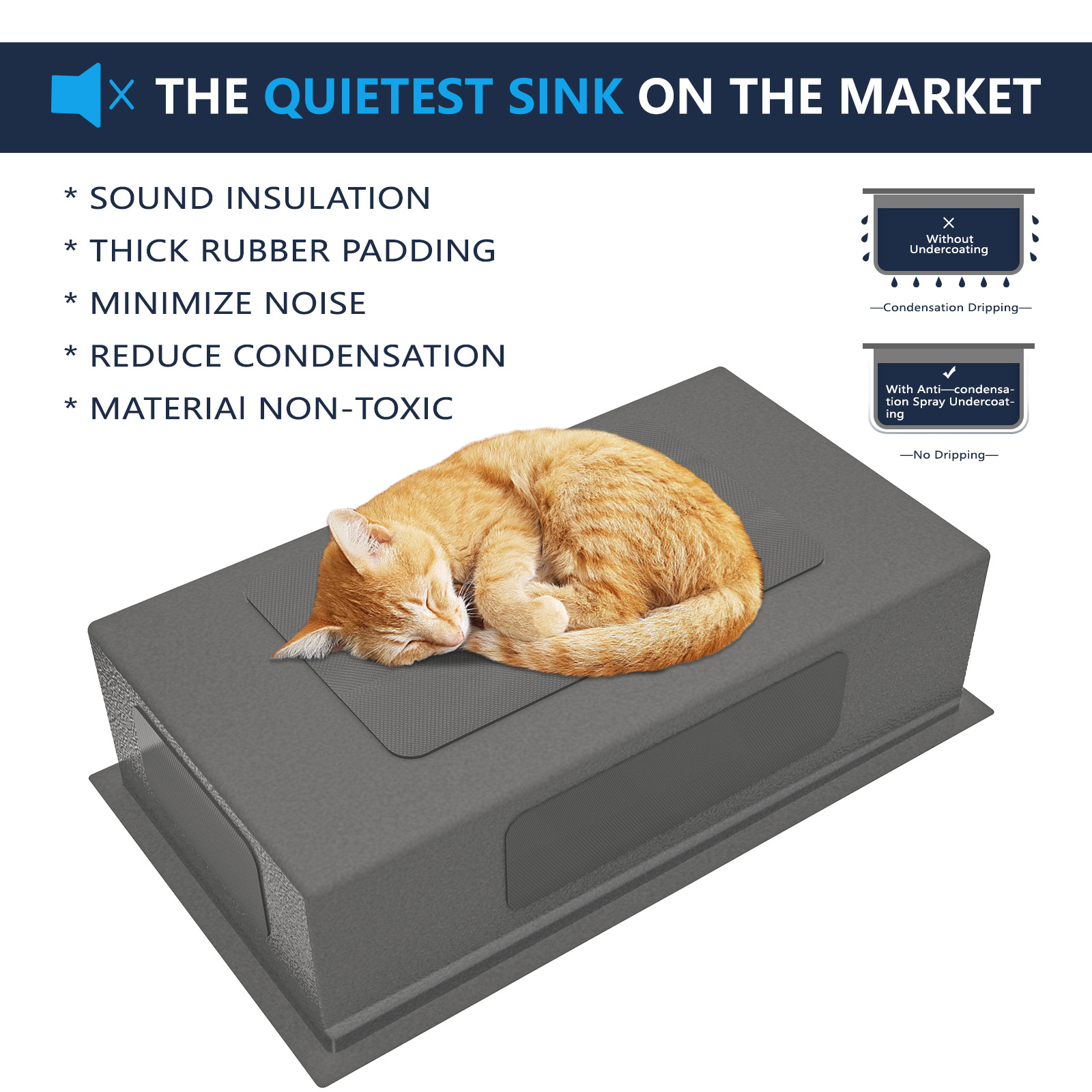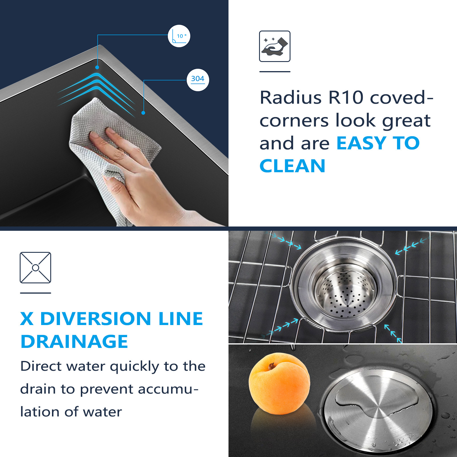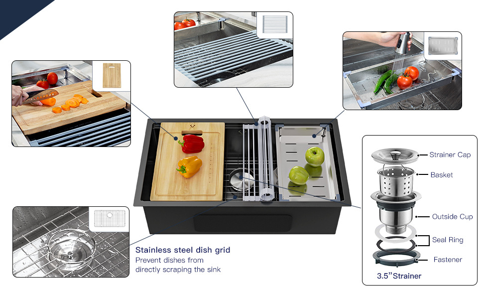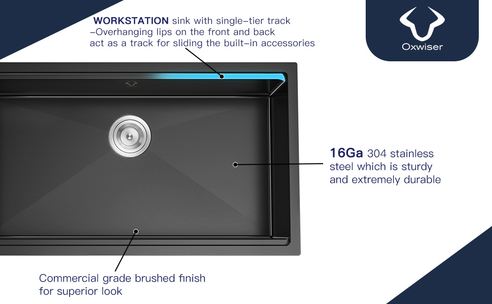 SUS304ステンレス製シンク、手作業で厚く加工された台中式/台下式キッチンシンク、大型単槽食器洗いシンク