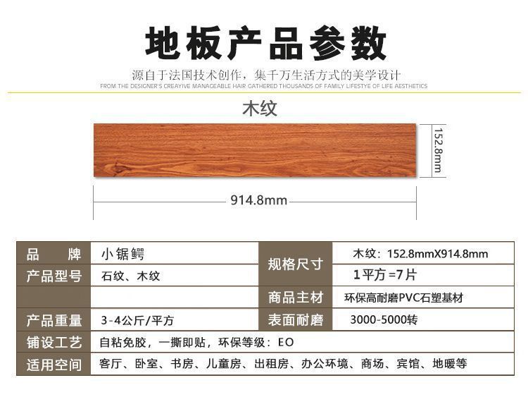 跨境品质15×45cm自粘地板贴抗压耐刮防水防潮卧室客厅地面翻新贴