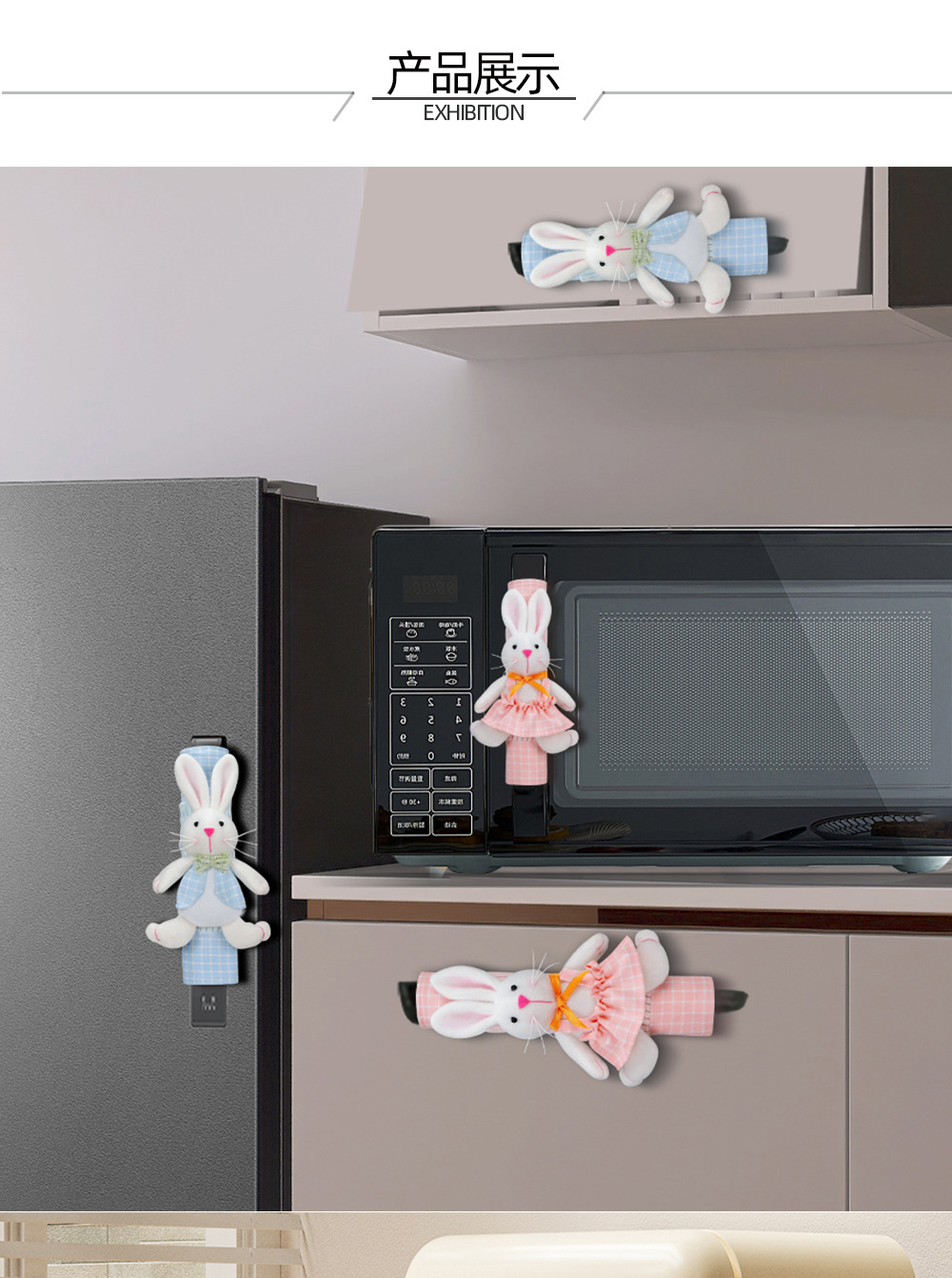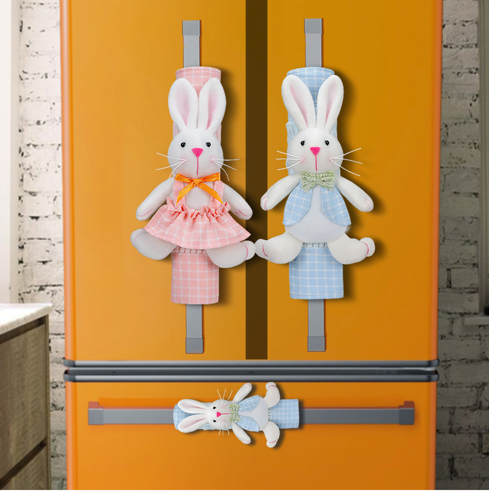 跨境复活节新品 创意可爱兔子冰箱把手套 手柄套 家居装饰三件套
