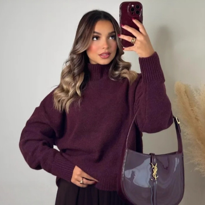 アマゾン国境を越えた対外貿易欧米女装2024秋冬新街頭ファッション軟質純色高襟ニット