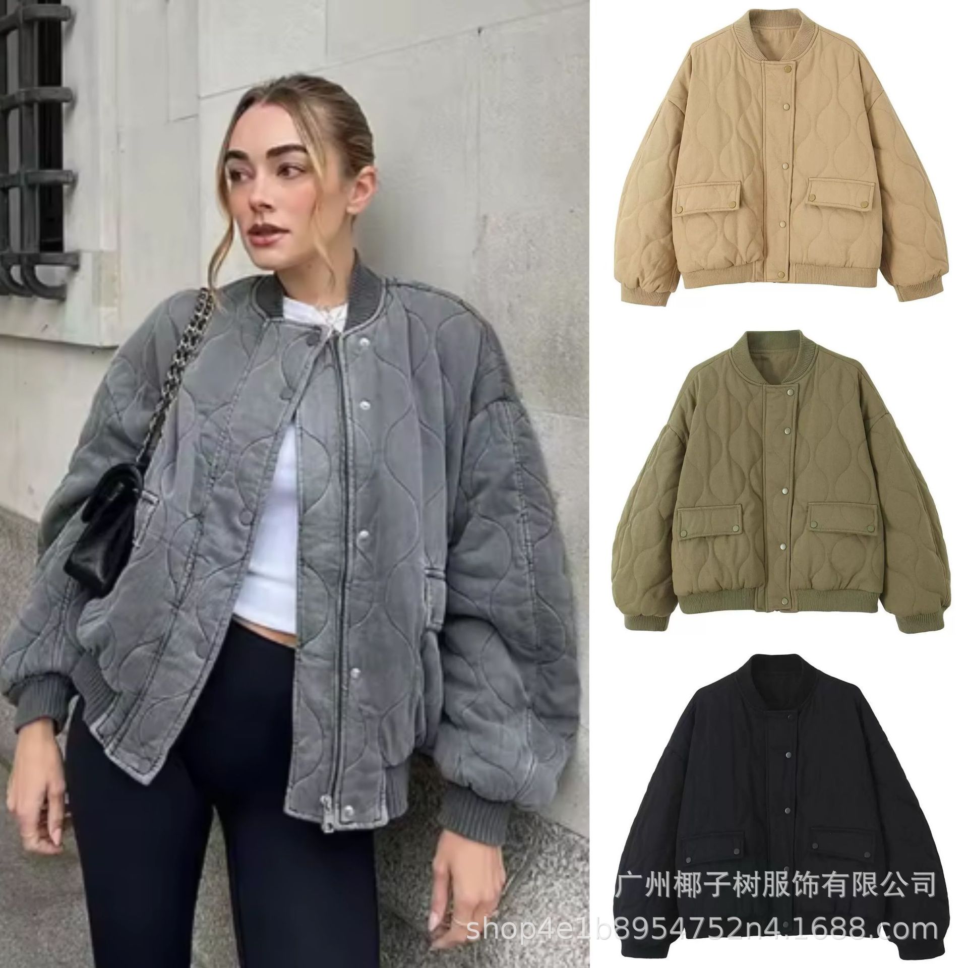 AliExpress クロスボーダー外国貿易ヨーロッパとアメリカの女性の ZA 秋と冬の新しいストリートファッションカジュアルキルティングコットンコートジャケット