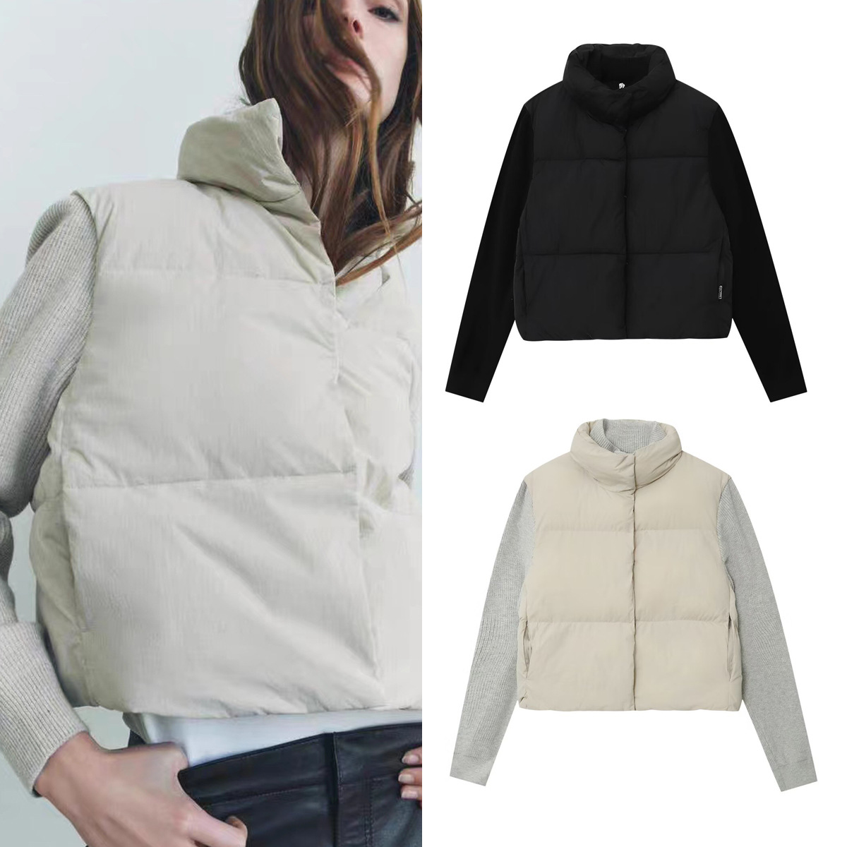 国境を越えた対外貿易冬の新型女装欧米風ファッションは長袖保温綿服ジャケットをつなぎ合わせた