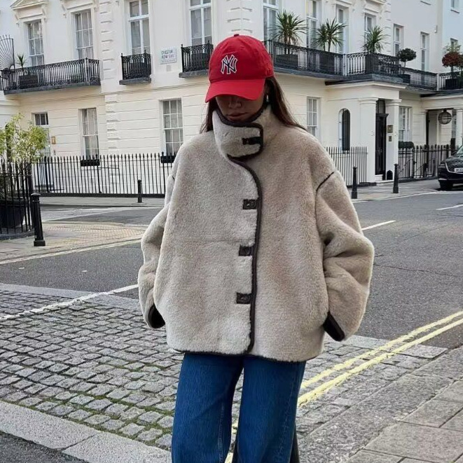 クロスボーダー AliExpress 女性の厚いラムウールの厚いコート女性の冬 za 新しい毛皮のコート