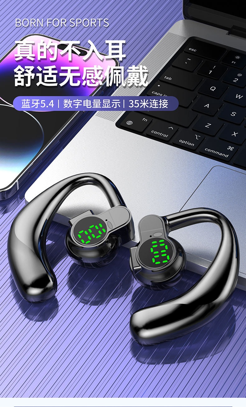 左右旋转数显新款蓝牙耳机挂耳式耳机适用苹果OPPO华为vivo小米