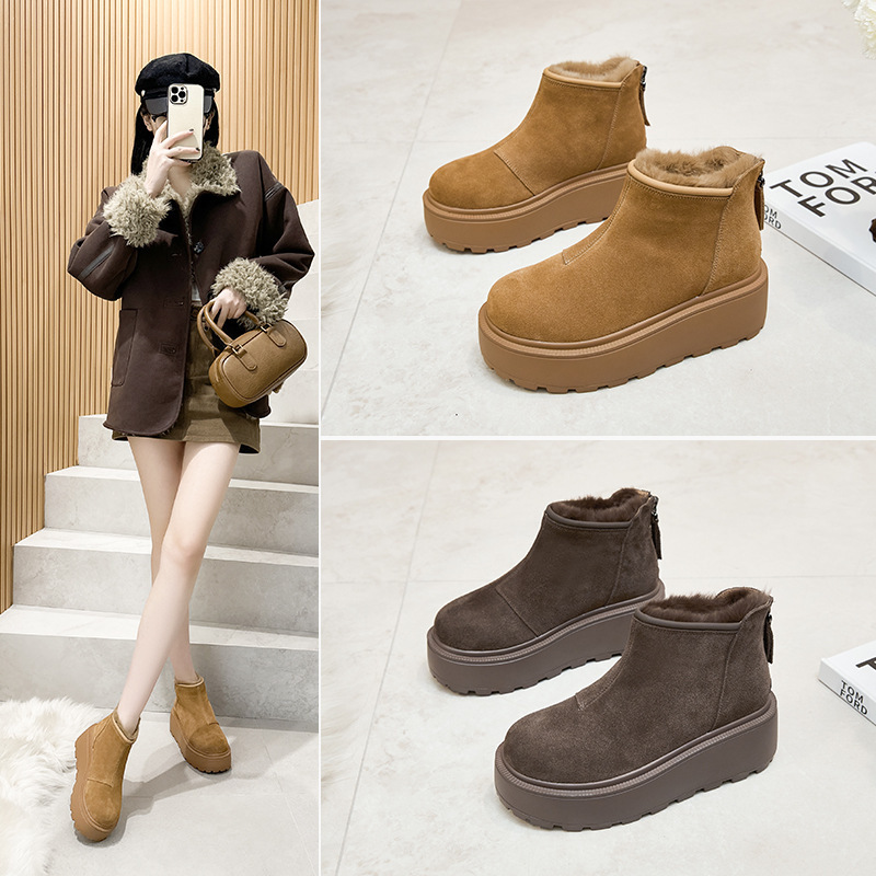 9931 スノーブーツ女性のための 2025 新しい冬ベルベット肥厚ショートブーツ本革暖かい女性の靴平底滑り止め東北