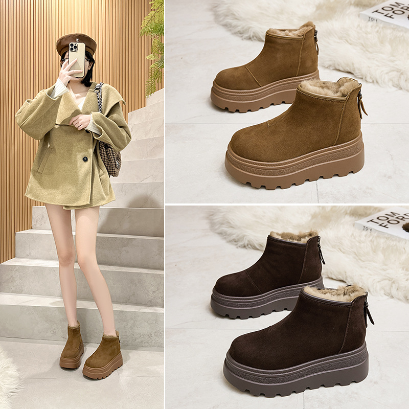 5cm現物サイズ31-40角頭中と後ファスナー冬ショートブーツ女性ソフト革ショートブーツ