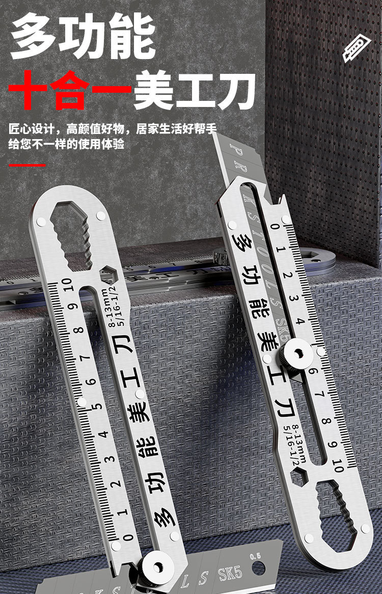 ステンレスの多機能十合一の美工刀は厚くて丈夫です。