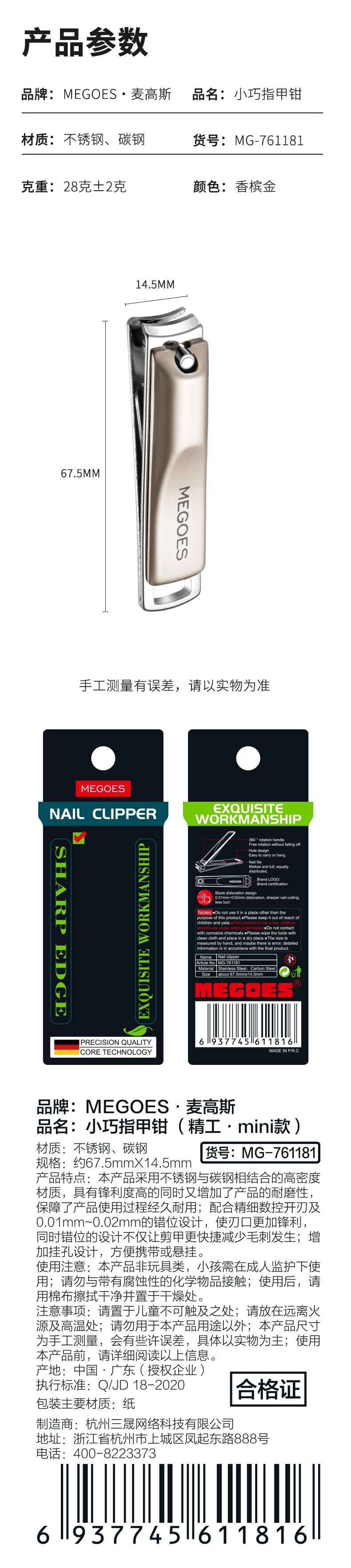 MEGOES麦高斯の小さい爪切りの爪切りの大きいサイズの平口の家庭用の爪切りのネイルツール