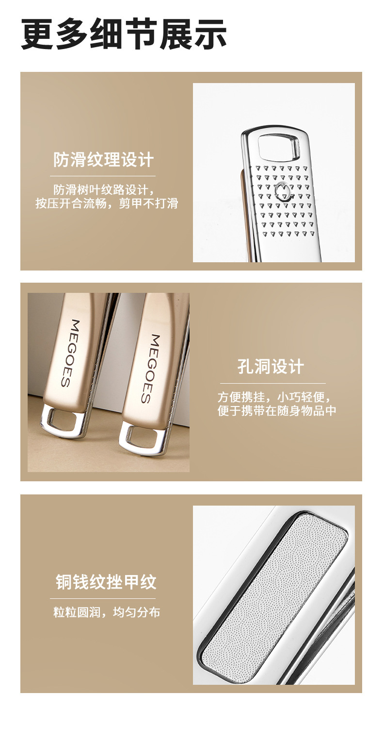 MEGOESMGS好用防飞溅不锈钢指甲剪斜口家用修脚指甲刀套装批发