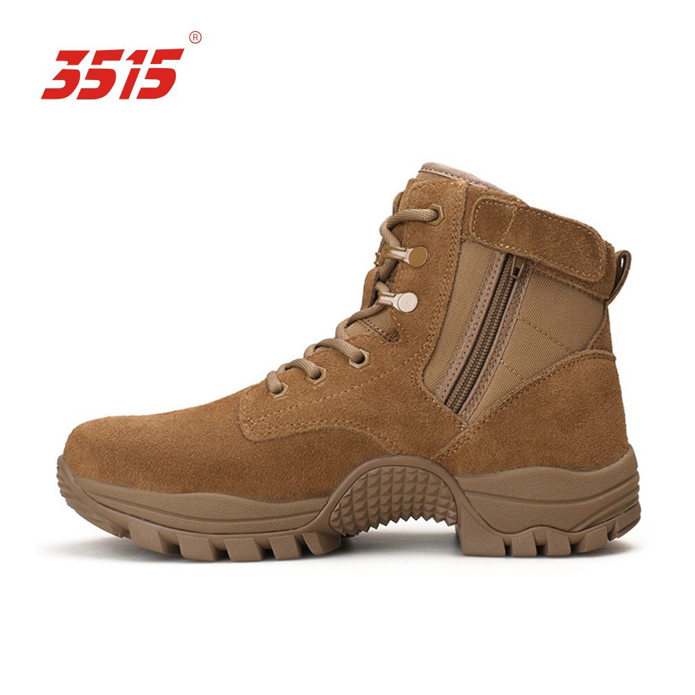 3515中帮棕色作战靴新款防穿刺训练鞋超轻皮靴沙漠靴