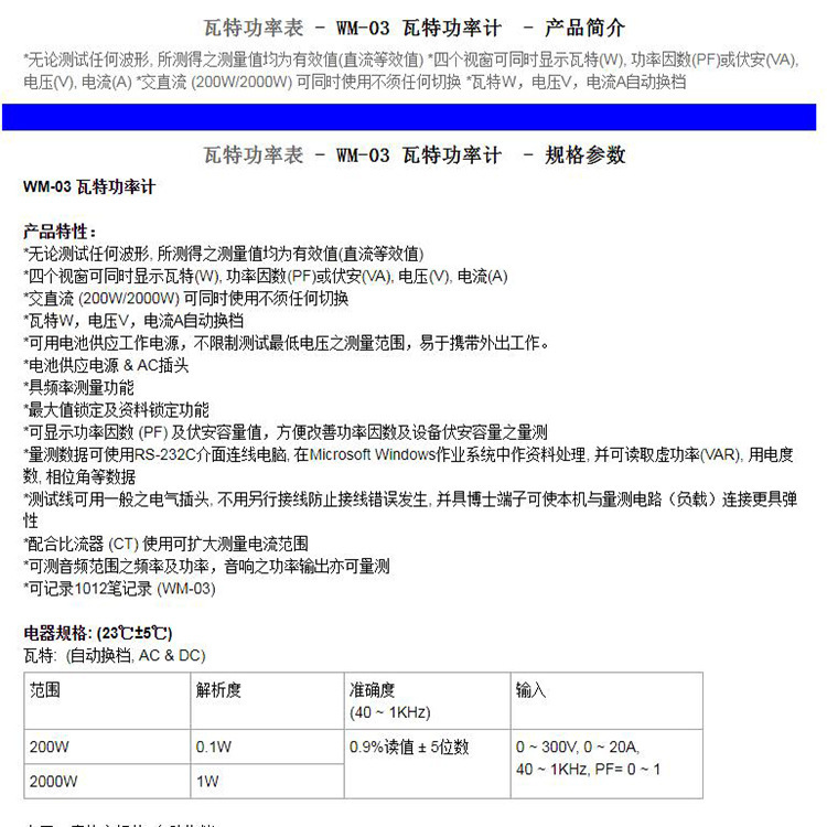 Wm 01/02/03台湾宝華記録可能型ワット電力計データ記録自動交流直流電力計