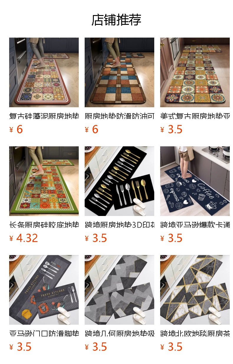 クロスボーダー台所マット3Dプリント滑り止め底水晶パイル強吸水吸油床汚れ防止カーペット室内