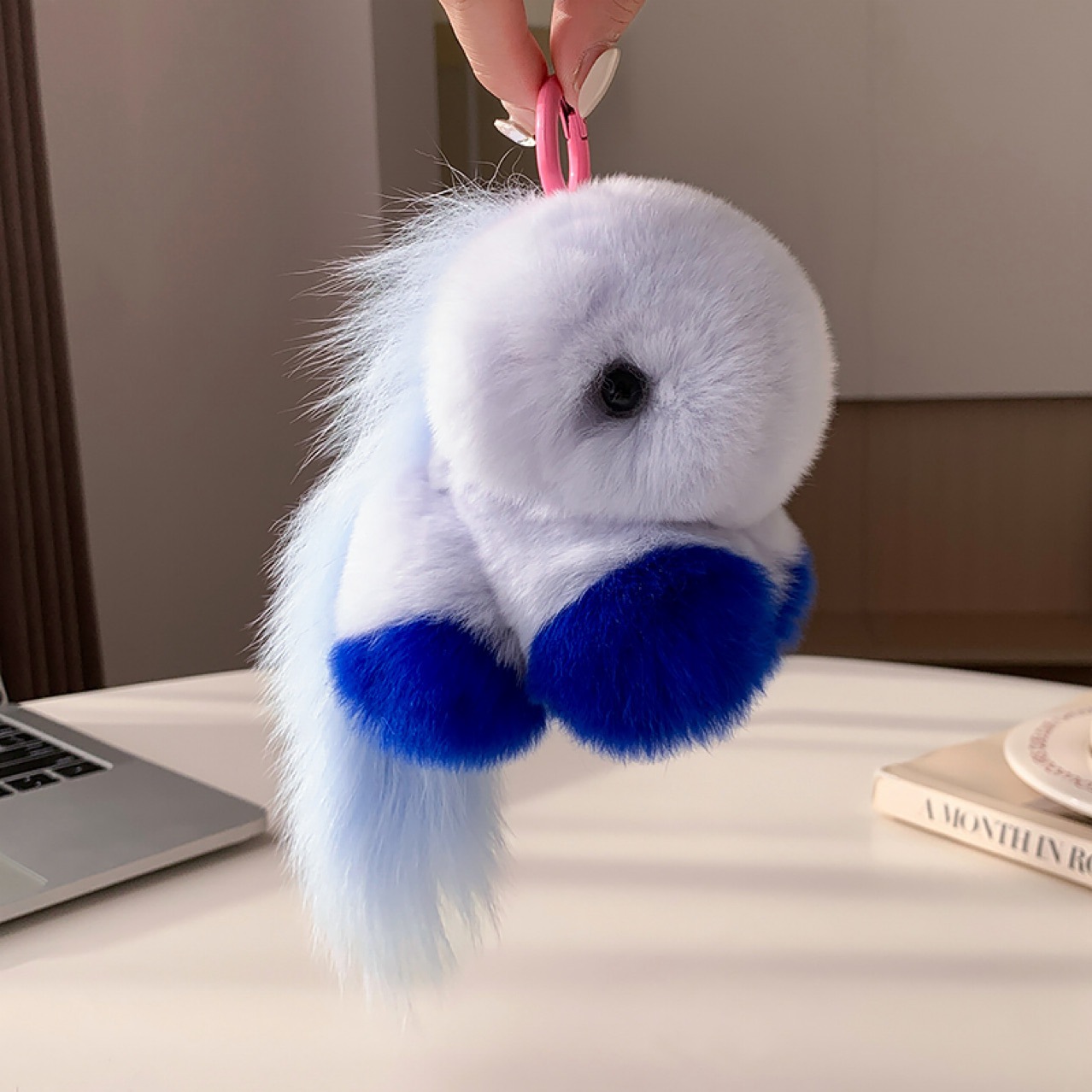 かわいいドーパミンのウサギの毛の小さい石炭のボールの自動車のキーホルダーは毛のボールのぬいぐるみのカバンを掛けて贈り物を飾ります。