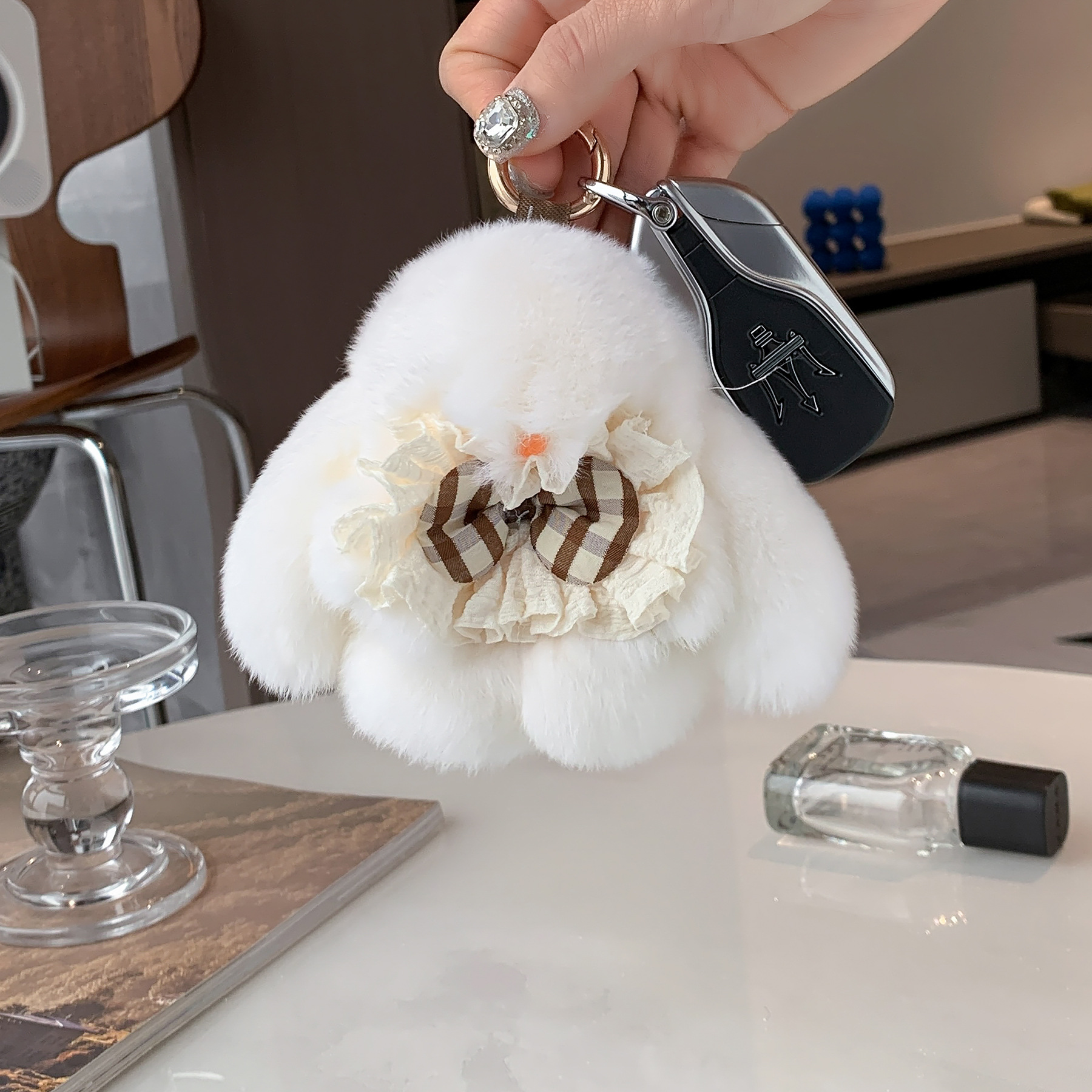 精巧な蝶結びのウサギのペンダントは自動車のキーホルダーを包んで、ウサギの毛は死んだかわいいぬいぐるみを装ってプレゼントします。