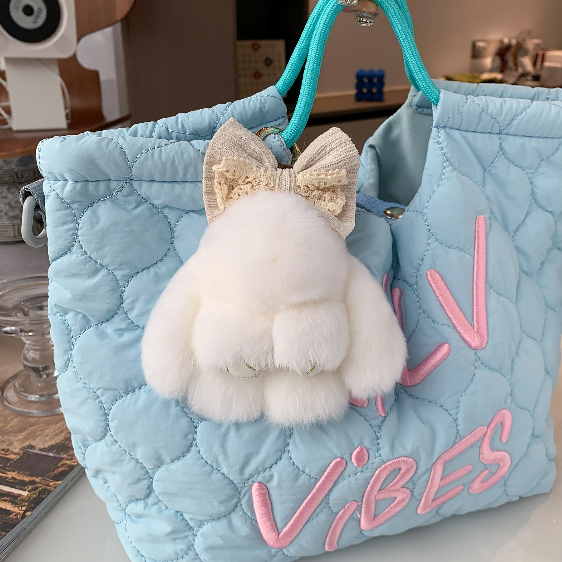 真獭兔毛蝴蝶结萌萌兔车钥匙扣挂件可爱毛绒垂耳兔子玩偶包包挂饰