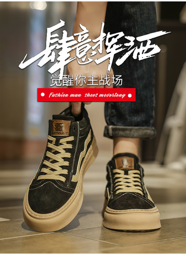 高組男靴2024冬の潮流はレトロな香港風の中でカジュアルな青少年の高級感のある戸外板靴を助ける