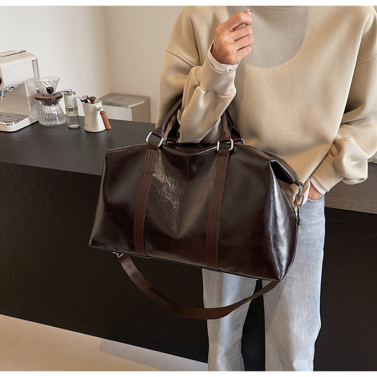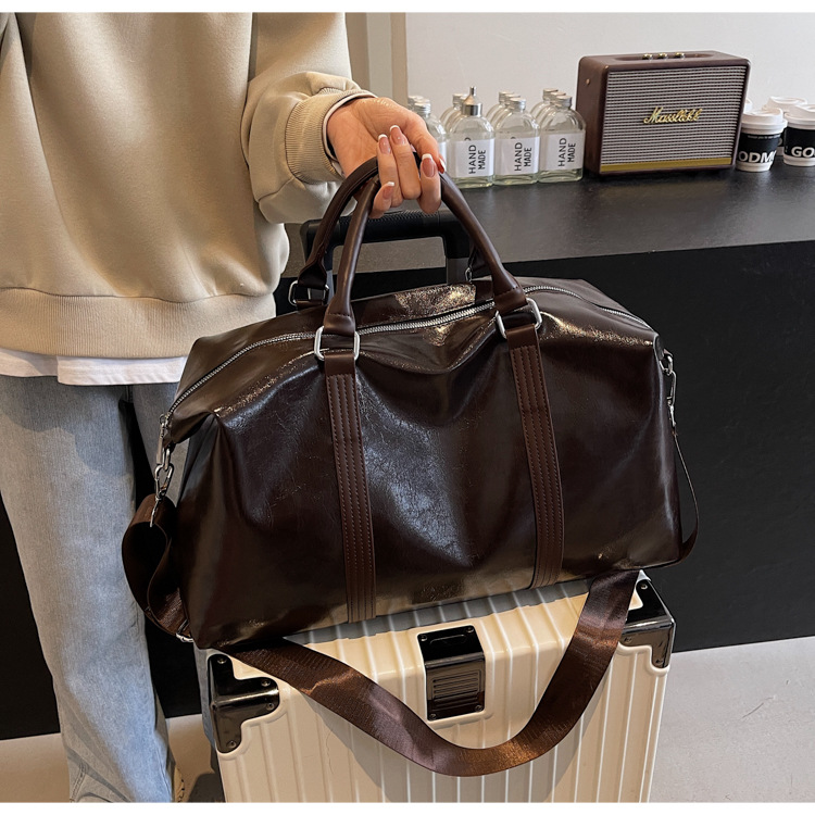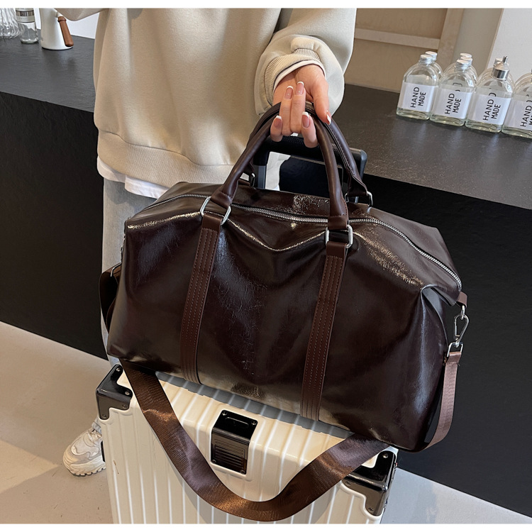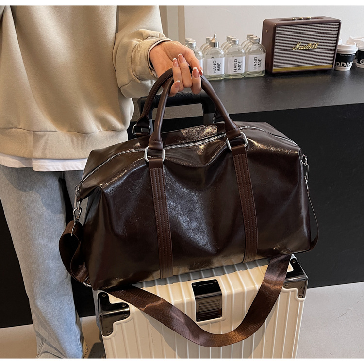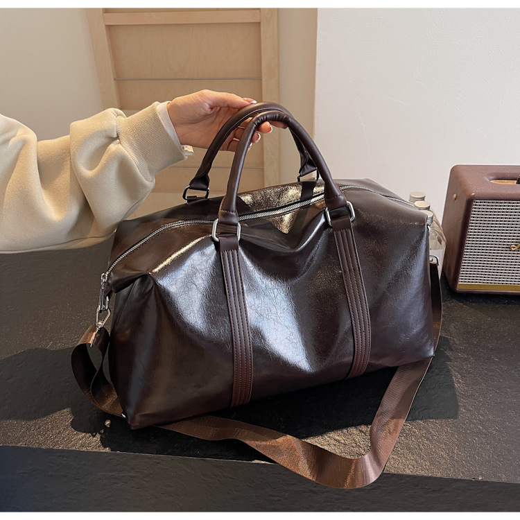 Pu皮欧米レトロ旅行バッグ円筒防水ハンドバッグ大容量飛行機荷物袋スポーツフィットネスバッグ