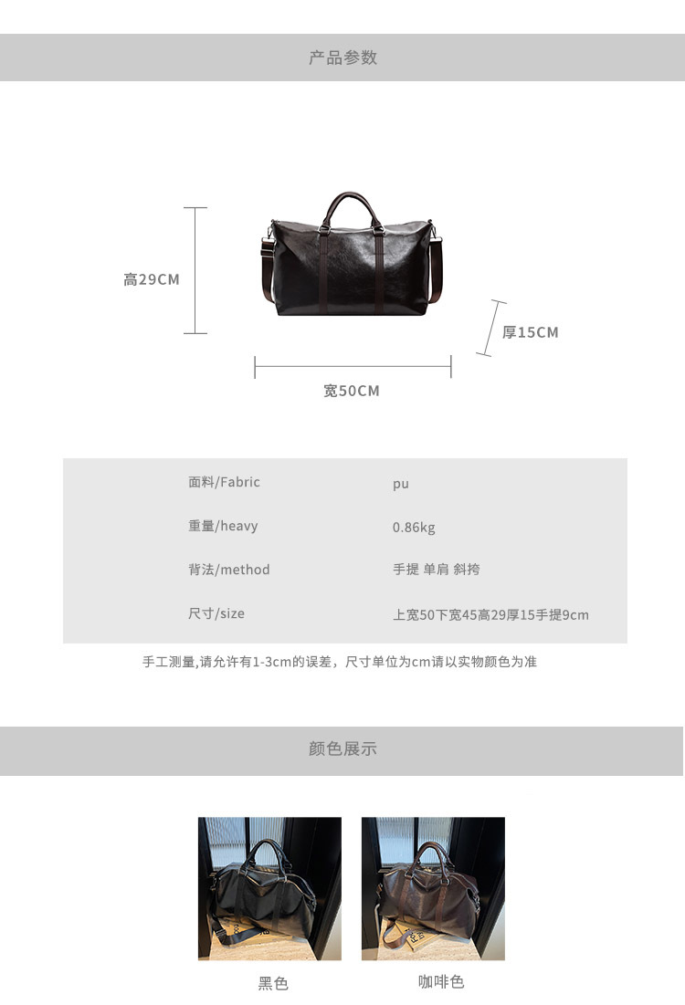 韓国版シンプル大容量軽量洋風旅行バッグ新型ファッション純色ボストンバッグ