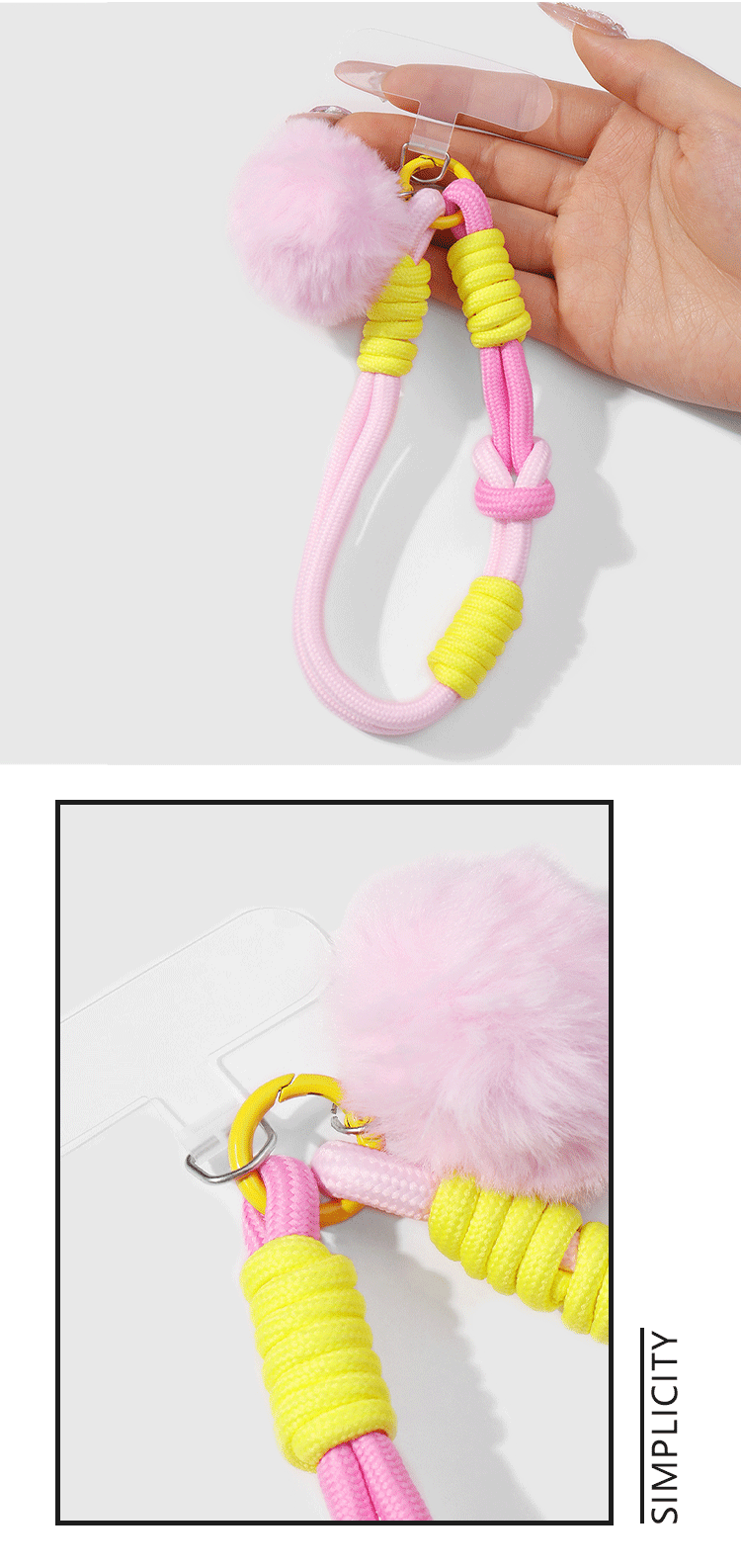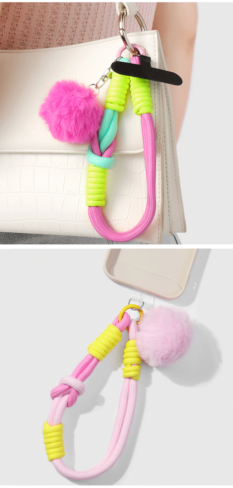 クロスボーダー爆金ins甘美で洗練された高颜値毛玉手織り登山ロープDIY携帯電話ペンダントキーホルダー