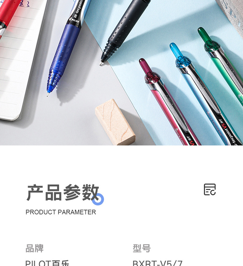 日本百楽筆pilot開拓王ボールペンBXRT-V5押し式中性筆サインカラーペン