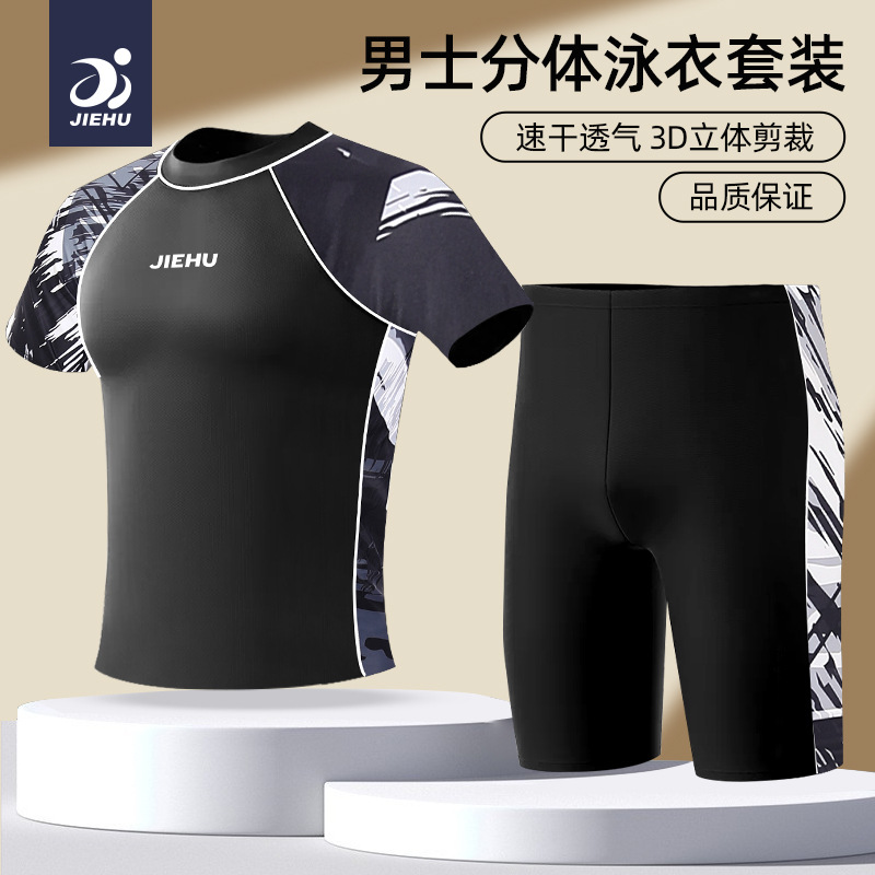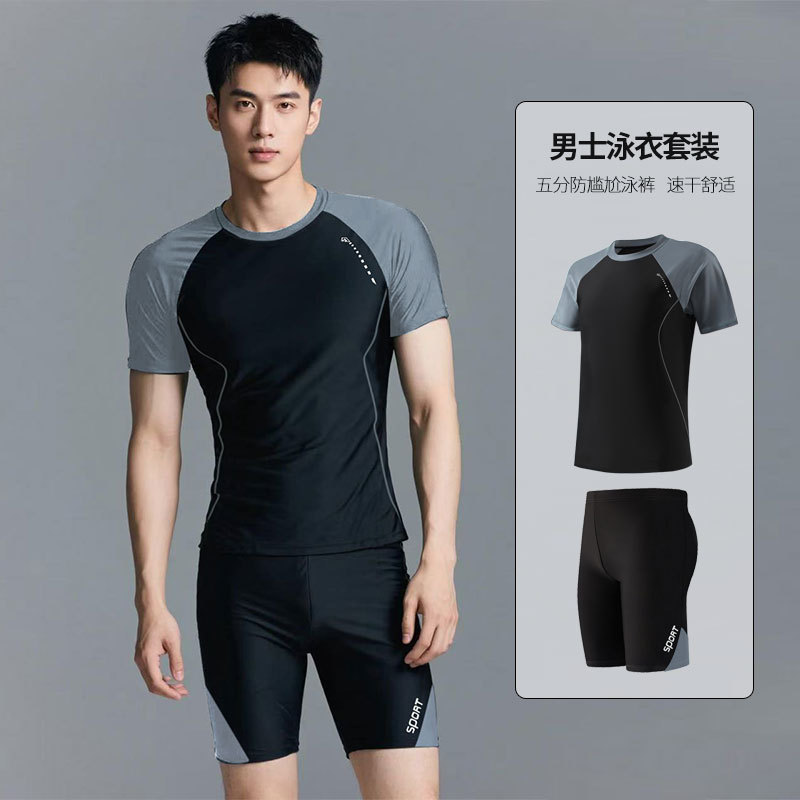 水着男性スーツ男性水着フルセット水着男性五分ズボン上着付き成人水着卸売り速乾