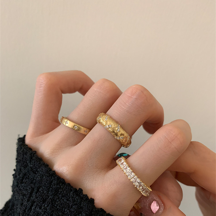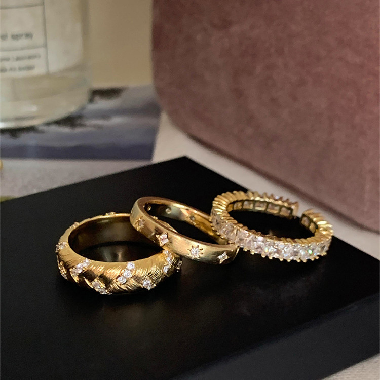 中世の女性用スリーリングリング、ニッチなライトラグジュアリーデザイン、ハイエンドの人差し指リング、新しいジェムストーンリング