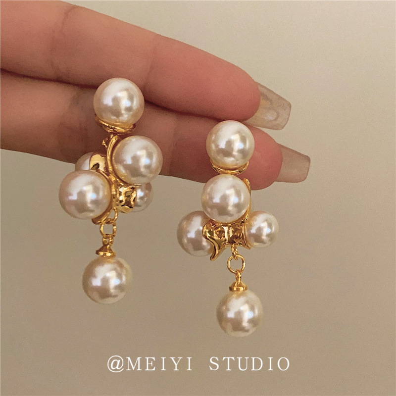 雲浮星 ~ フレンチレトロ真珠モザイク気質ペンダントイヤリング軽贅沢高級感ロングピアス潮