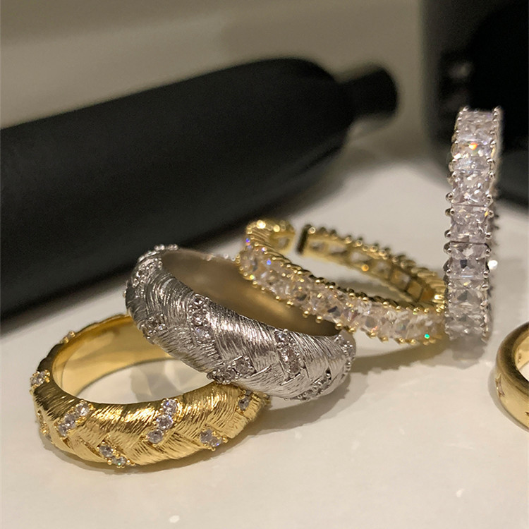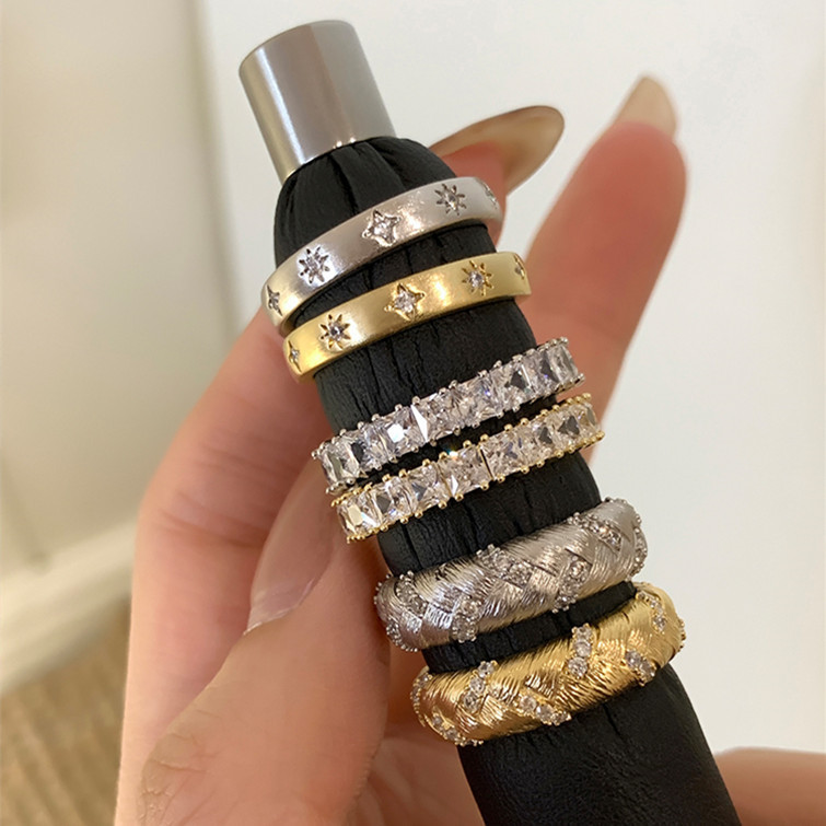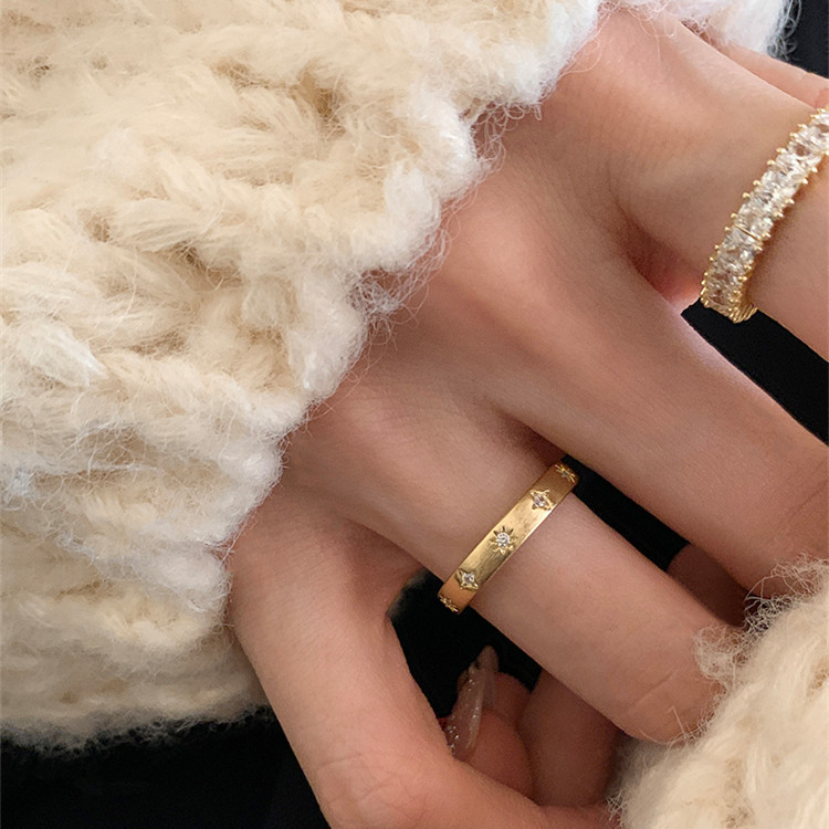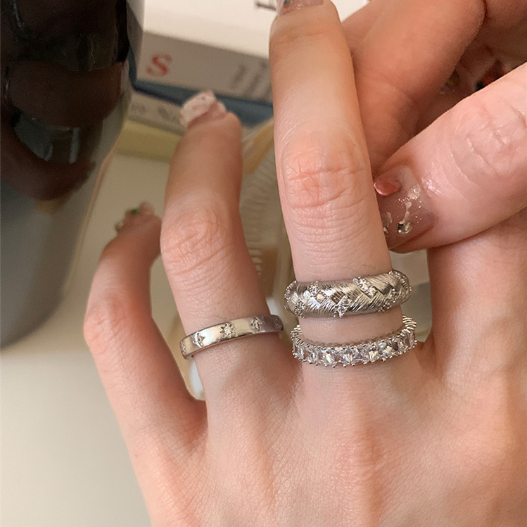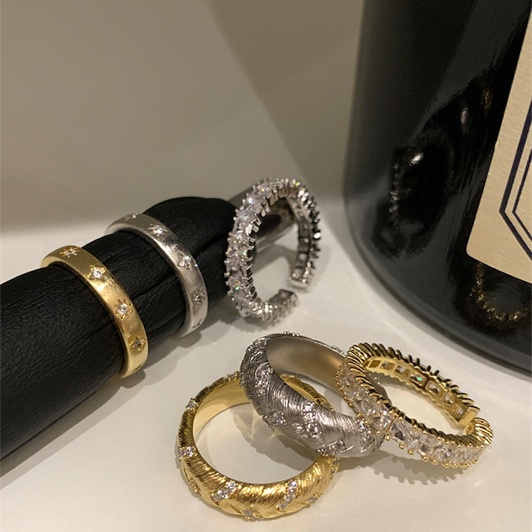 韓国の軽豪華なプルストーンの指輪の女性は優しくドリルの指の指輪の気質の小さい大衆の高級感を並べて指輪の女性をかぶせます。