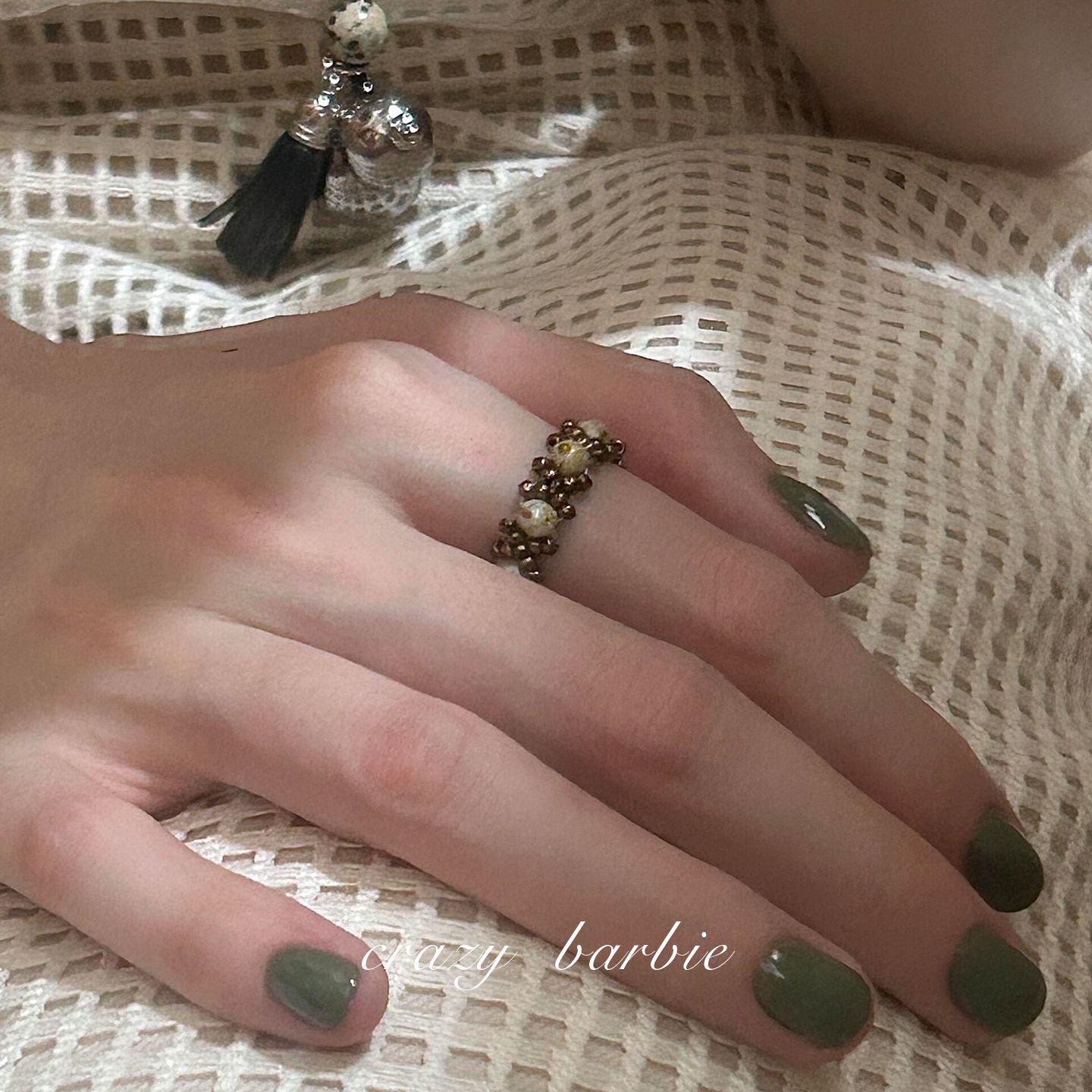 中古感!复古天然石编织戒指弹力可调节指环新简约手饰女戒叠戴