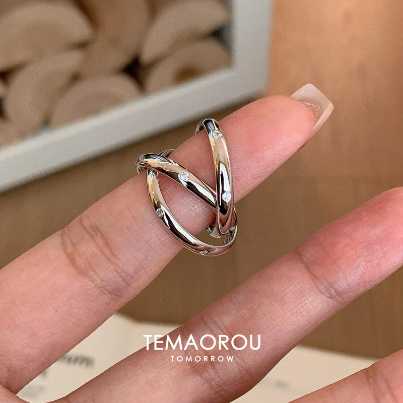 クリームエナメルクロスジルコンリング女の子新品軽豪華高級感食指戒独特絶美畳付指環