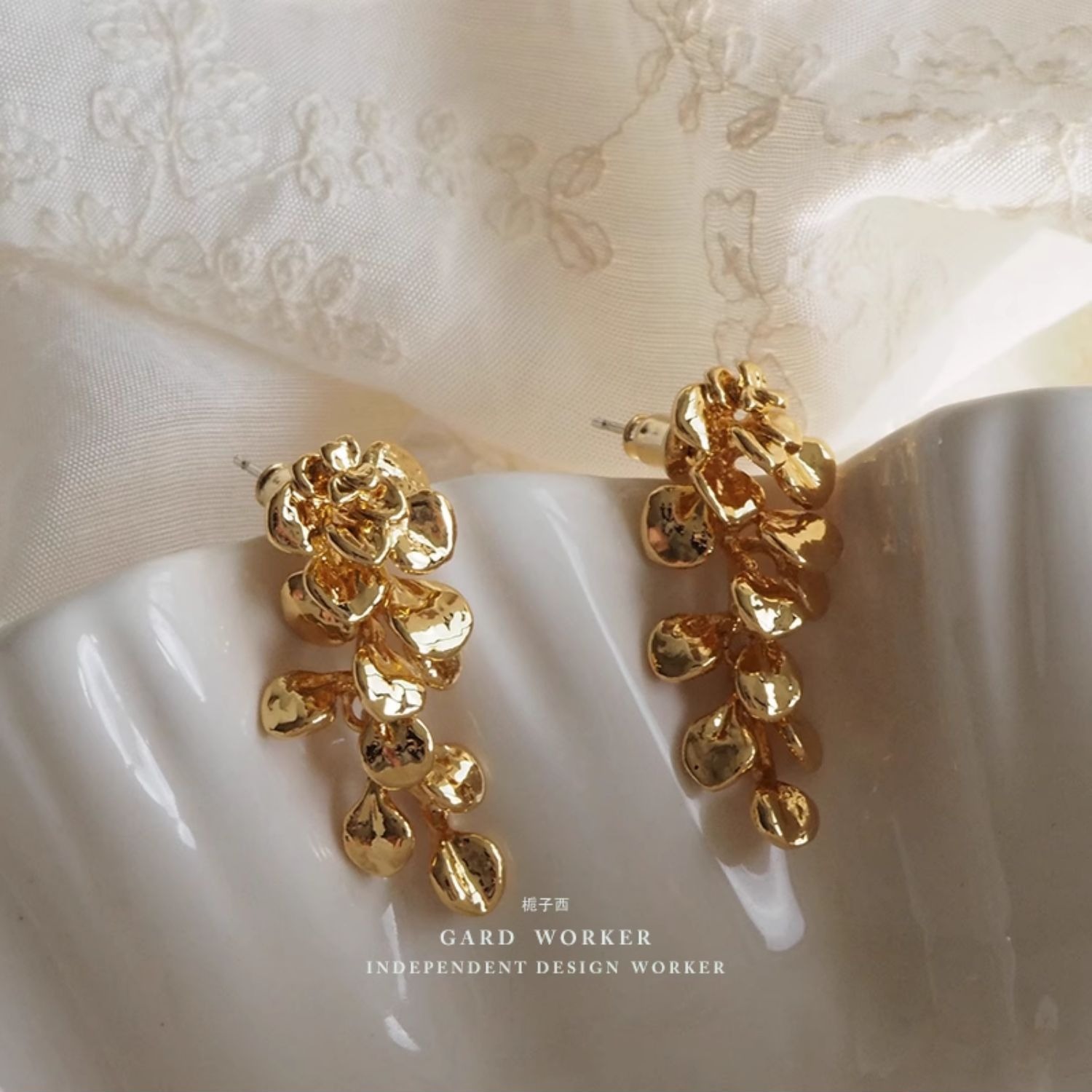 花の枝のシルエット ~ 誇張フランスのレトロな金属の花のフリンジイヤリングの女性の軽い豪華な大衆の気質のピアスのイヤリング