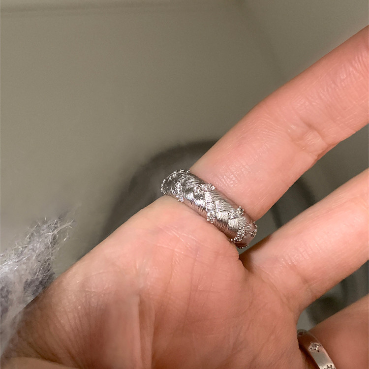 韩国轻奢拉丝水钻戒指女温柔排钻食指戒气质小众高级感叠戴指环女