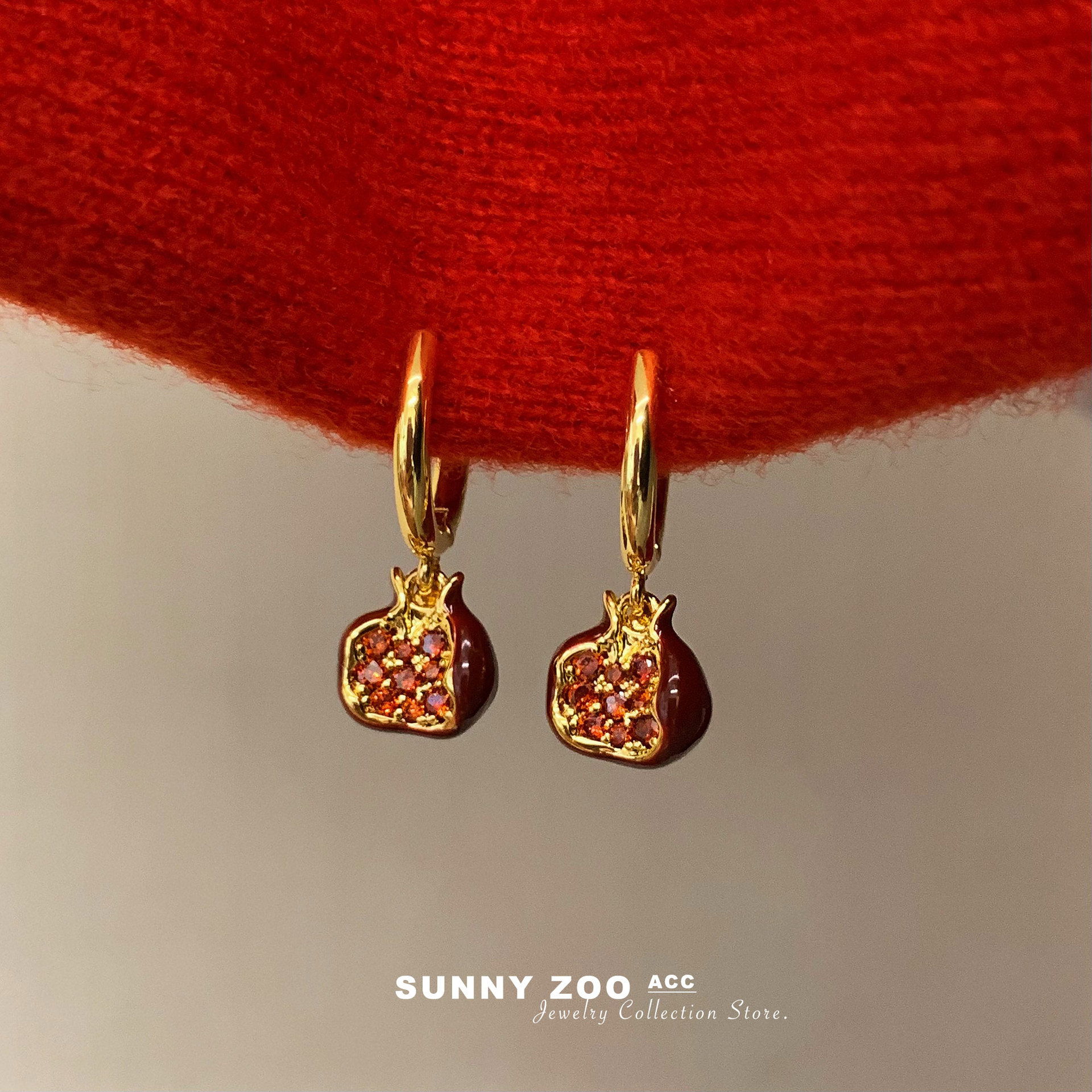 ザクロはレトロなアンコラの赤いザクロのイヤリングを赤くしました。