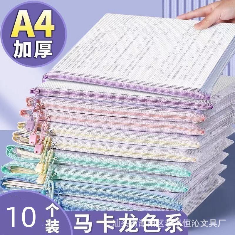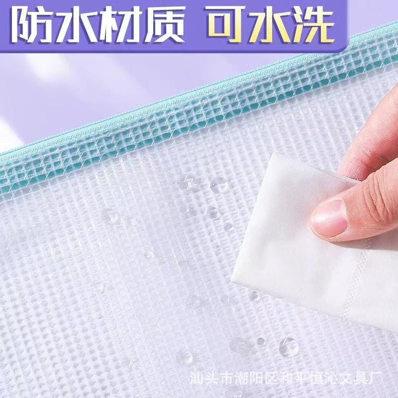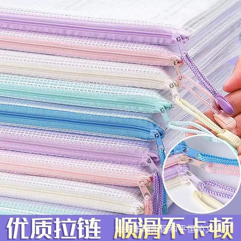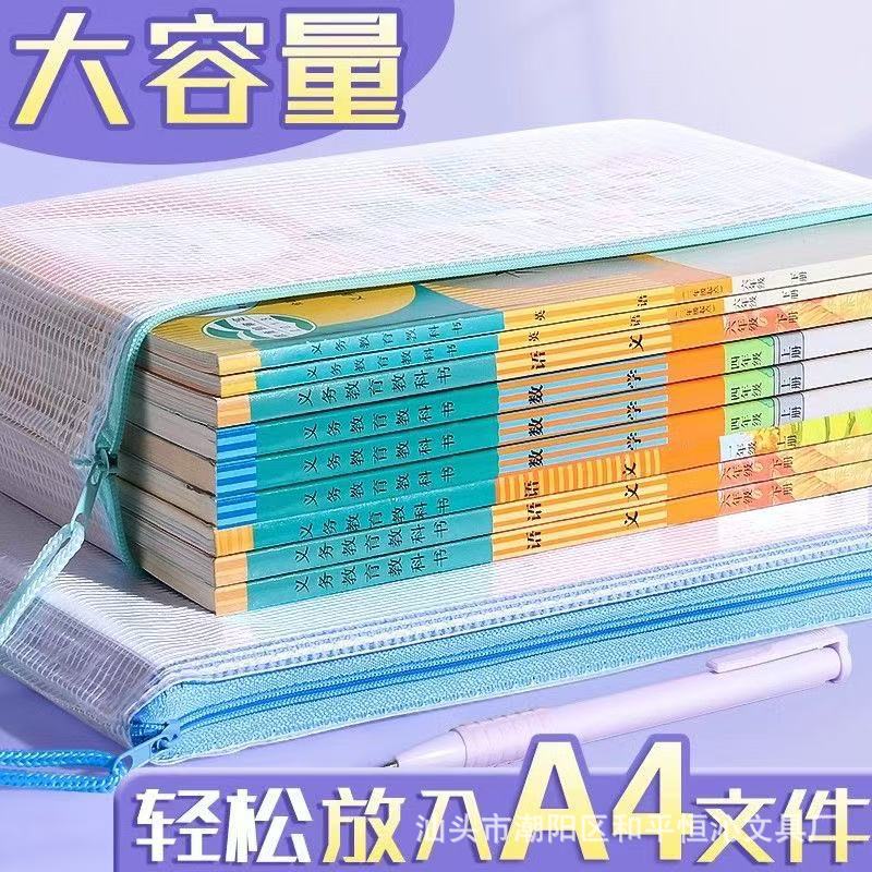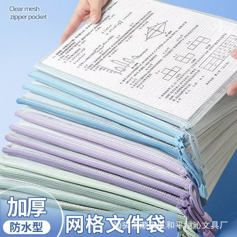 厚い書類袋透明メッシュジッパー袋大容量A4試巻収納袋チケットクリップ学生用文房具防水