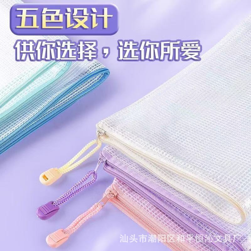 A4 ファイルバッグマカロンメッシュバッグ防水収納袋プラスチックテスト紙袋ジッパー情報袋分類袋