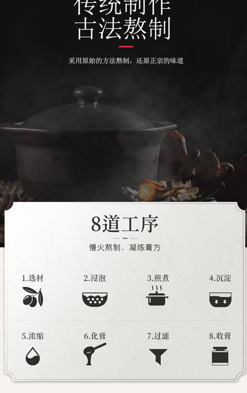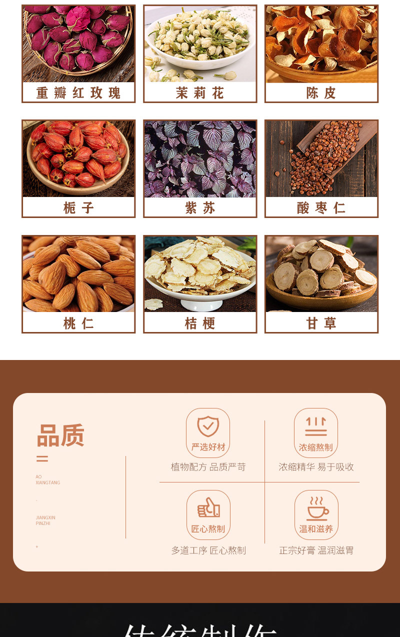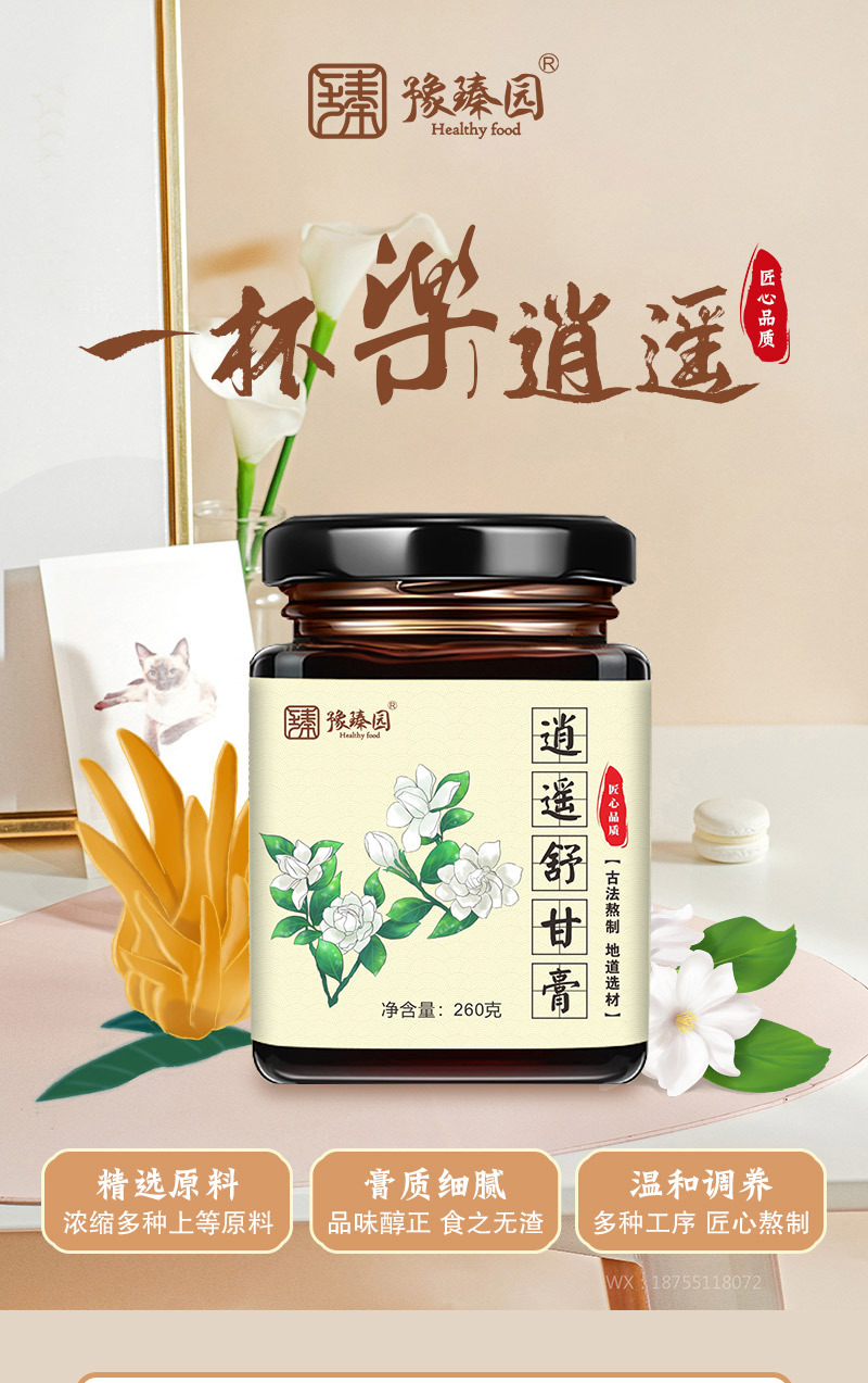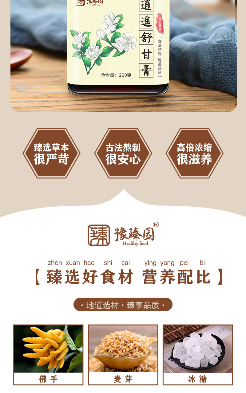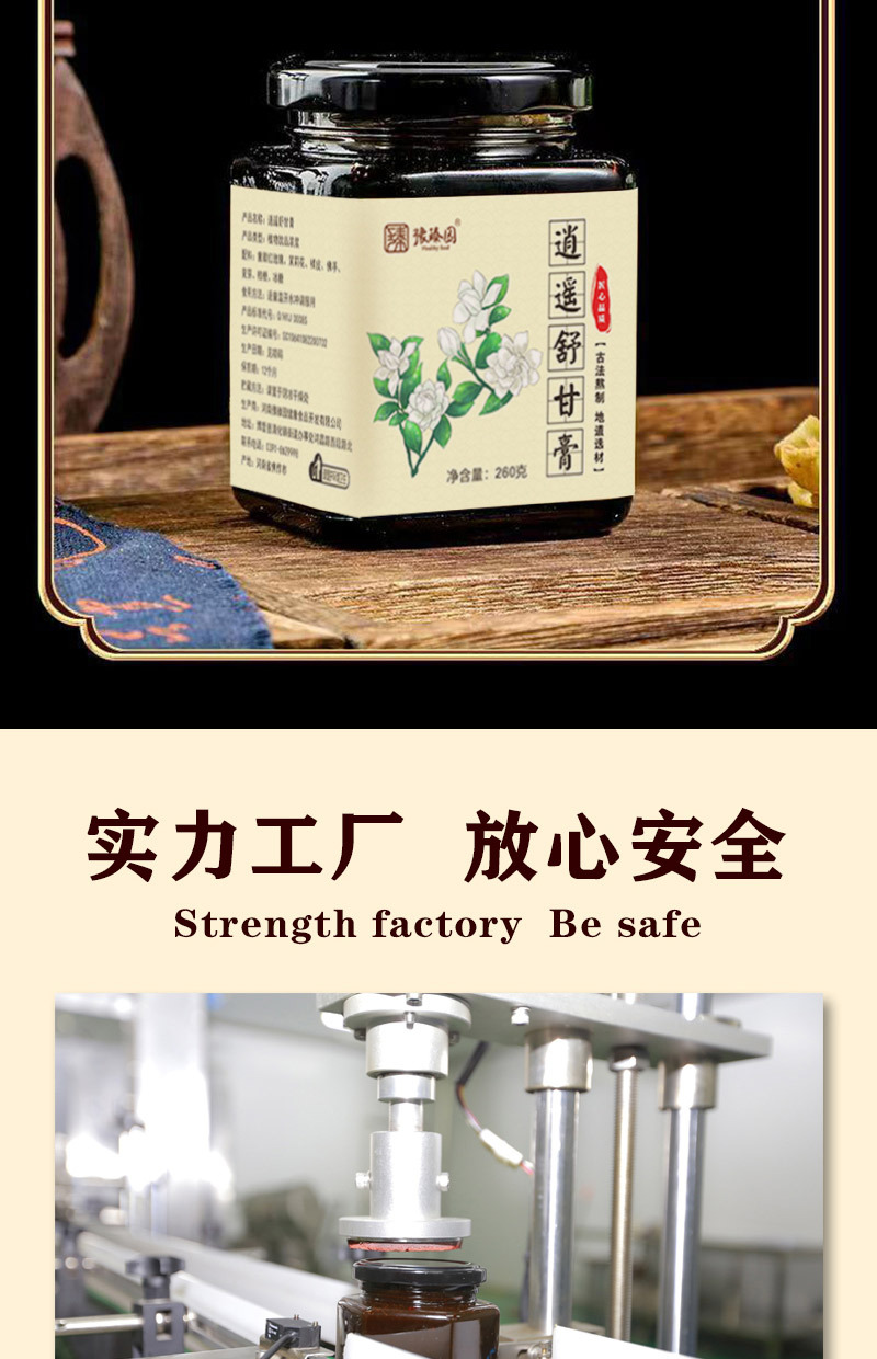 逍遥舒甘膏260グラムのナツメの仁仏手甘甘膏草本の原材料を煮て作っています。