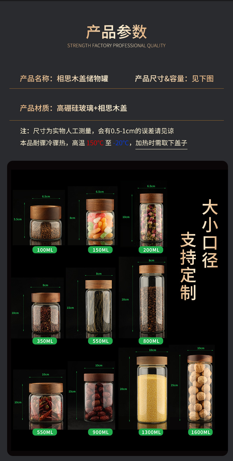 高ホウケイ酸ガラス-100ml 直径6.5*5.5cm; JM1089,高ホウケイ酸ガラス-150ml 直径6.5*8cm;JM1089,高ホウケイ酸ガラス-200ml 直径6.5*10cm;JM1089,高ホウケイ酸ガラス-250ml 直径6.5*12cm;JM1089,高ホウケイ酸ガラス-300ml 直径6.5*15cm;JM1089,高ホウケイ酸ガラス-500ml 直径6.5*18cm;JM1089,高ホウケイ酸ガラス-350ml (フラットキャップ) 直径 8*10c; JM1089,高ホウケイ酸ガラス-550mL 直径8*15cm; JM1089,高ホウケイ酸ガラス-800ml 直径8*20cm;JM1089,高ホウケイ酸ガラス-550ml 直径10*10cm JM1089,高ホウケイ酸ガラス-900ml 直径10*15cm; JM1089,高ホウケイ酸ガラス-1300ml 直径10*20cm;JM1089,高ホウケイ酸ガラス-1600ml 直径10*25cm;JM1089,高ホウケイ酸ガラス-2000ml 直径10*30cm;JM1089,アカシア材カバー;JM1089