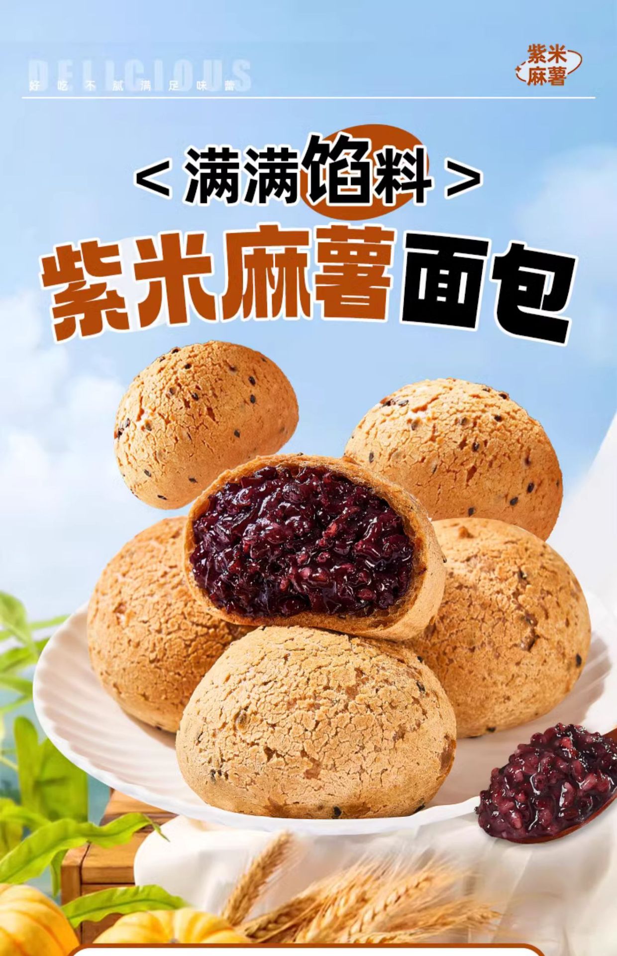 紫米麻薯球面包整箱早餐五黑三明治糕点健康解饿零食品小吃