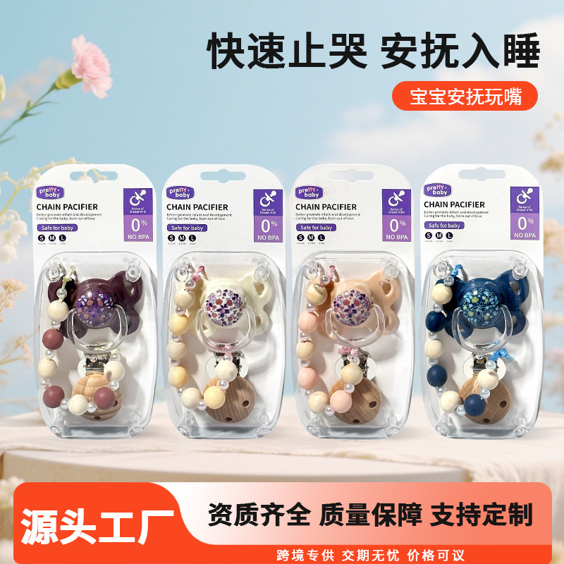 安抚奶嘴食品级硅胶玩嘴宝宝七彩链条超柔软耐咬母婴外贸用品批发