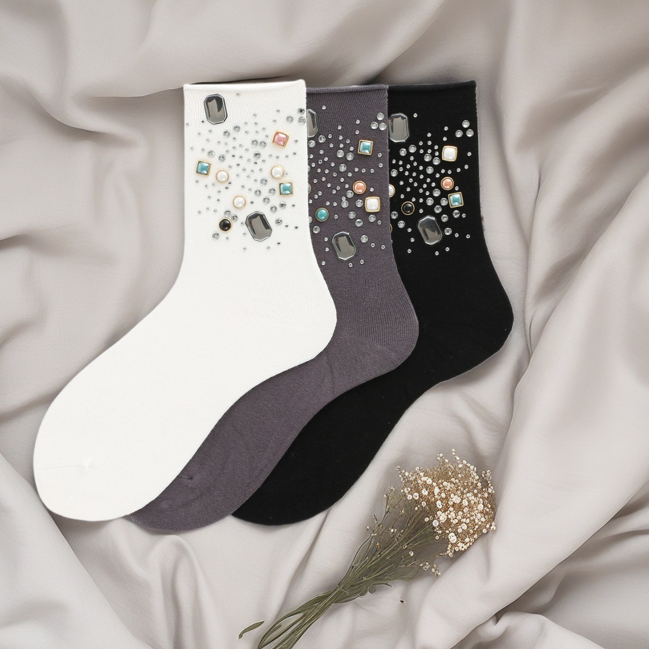 ジュエリーソックスヨーロッパの軽い高級装飾ホットダイヤモンド中空愛春と夏の薄い綿の靴下女性の靴下二本針黒と白