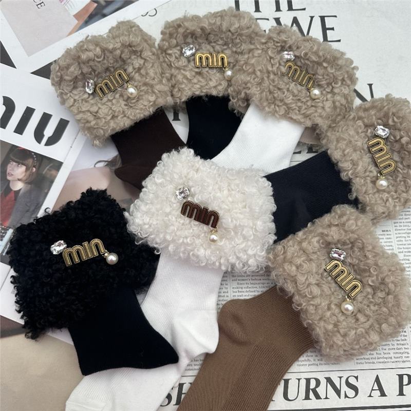 2024秋冬新作欧品女性靴下洋気靴下口羊毛中筒靴下手作り釘珠縫いドリル雪地靴靴下