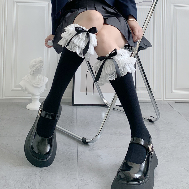 2025Lolita多層レースのふくらはぎの靴下の蝶結びの綿の靴下のストッキングの美しいアンドロメダの日系の中筒