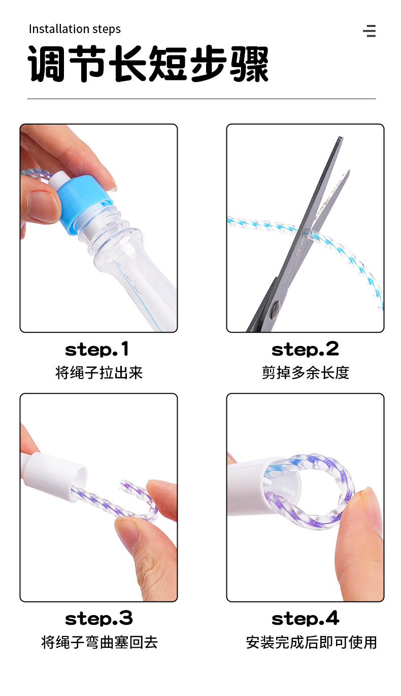 益鑫工場直販 子供用娯楽専用縄跳び 漫画柄 幼稚園 プラスチックハンドル カラフルな縄付き