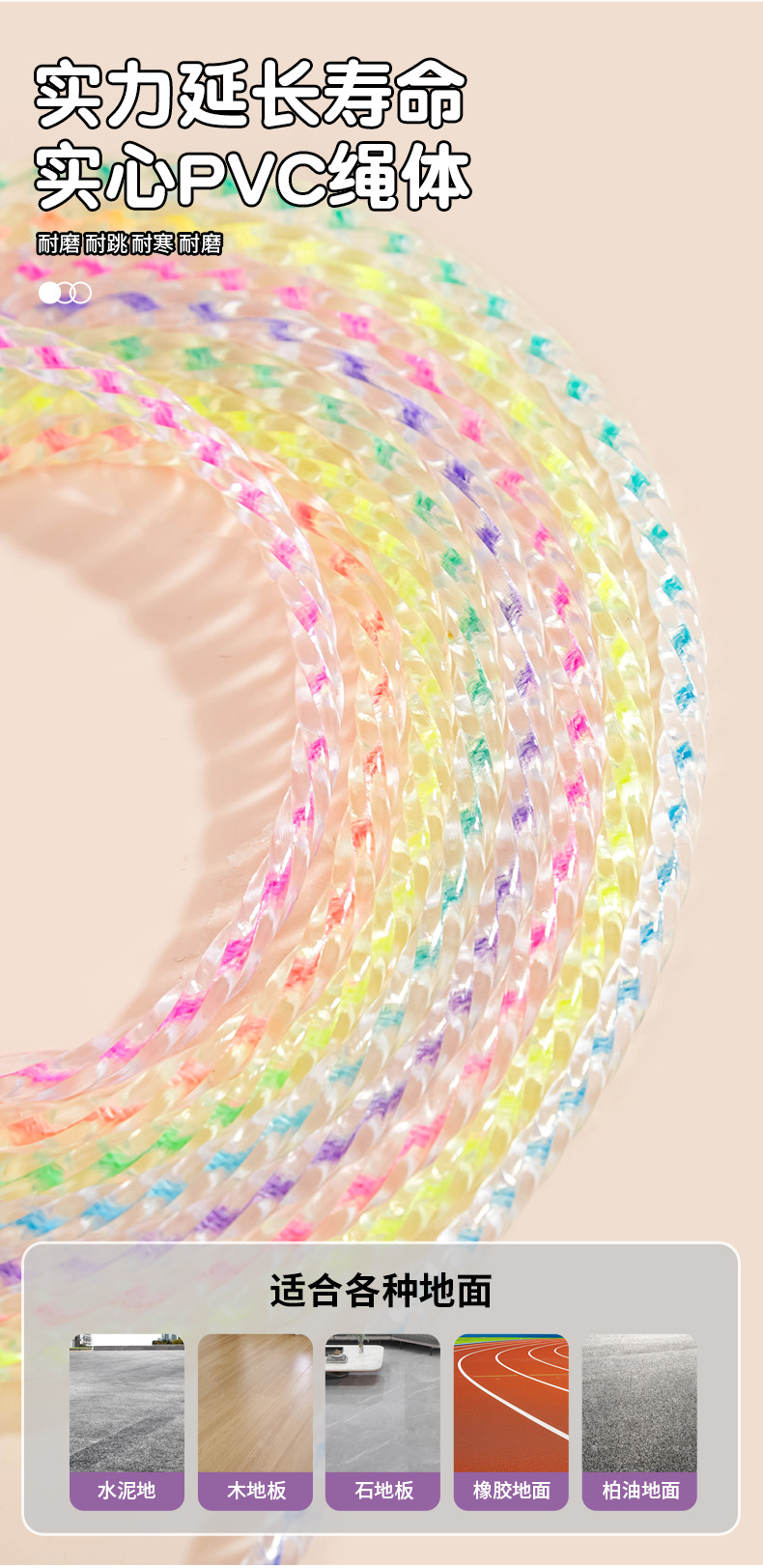 爆款跳绳健身运动中考训练小学生儿童马卡龙色手柄PVC实心绳批发