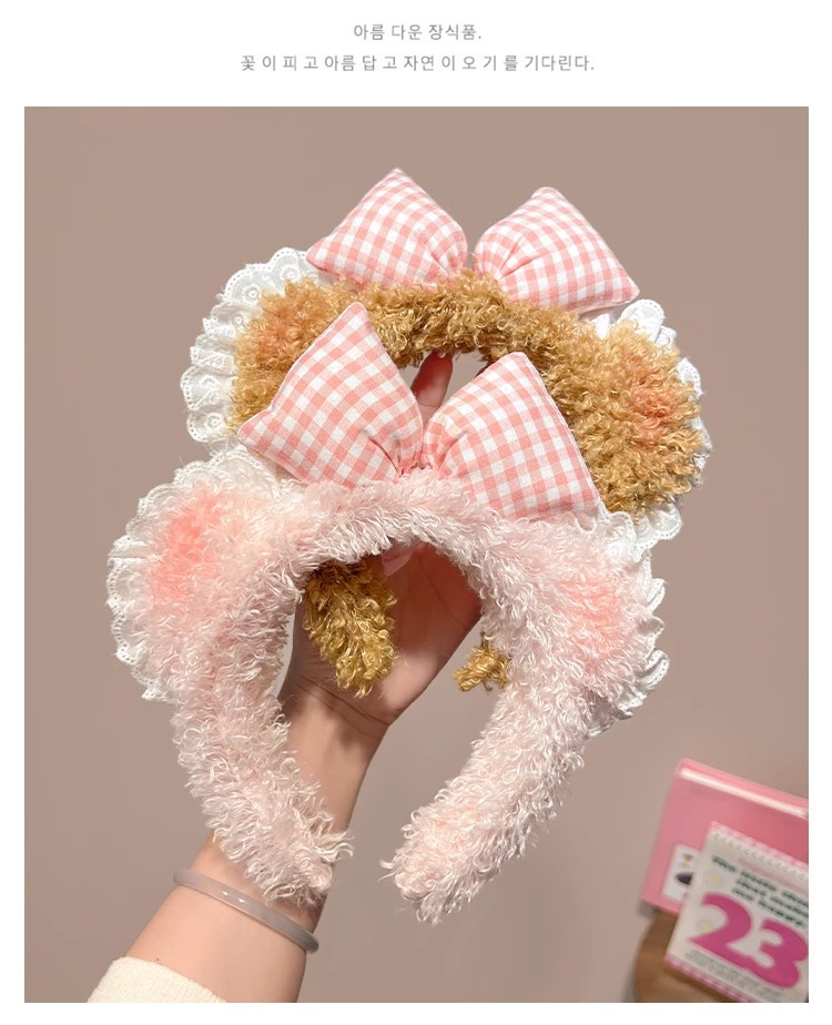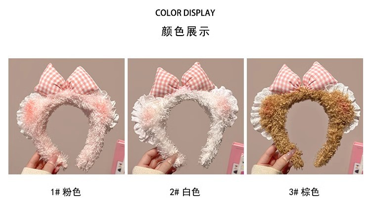 甜心腮红小熊发箍女蝴蝶结蕾丝花边熊耳朵洗脸头箍高颅顶粉色发卡