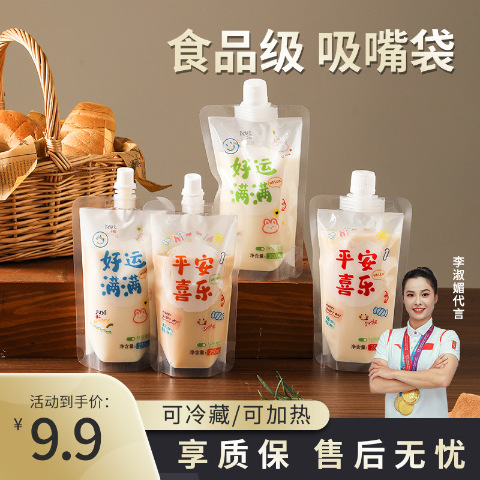 ヨーグルト、梅酢、使い捨て吸い口付き袋、テイクアウト用包装袋、ミルクティー、ジュース、食品グレード、食品グレード包装