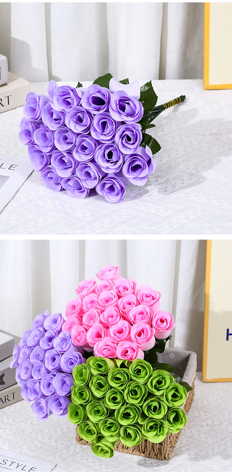 造花ローズ卸売 24輪マルチカラーローズ ホームデコレーション ウェディングシーンレイアウト 造花