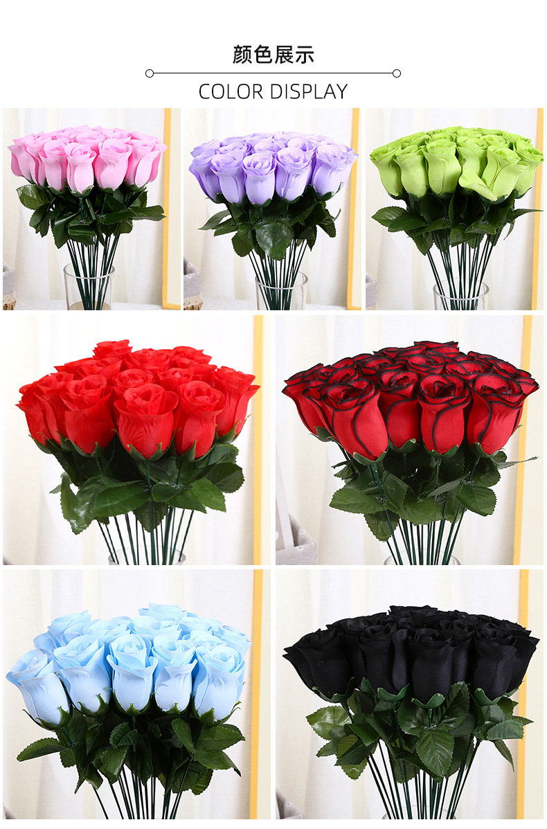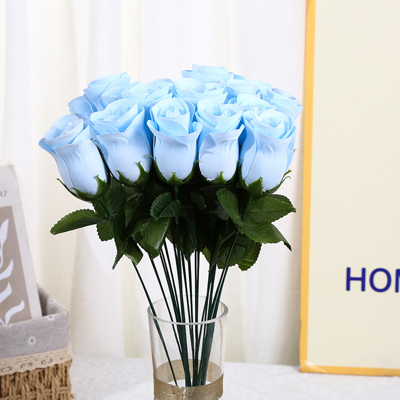 厂家直销仿真花单支小玫瑰花花蕾情人节七夕礼品花束客厅卧室摆放